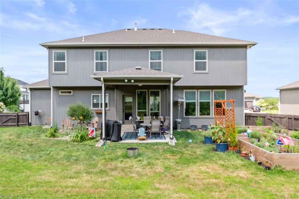 Modern elegance meets Craftsman's Charm in this sought-after Creekmoor Community!! This stunning home features 4-bedrooms, 3.5-bathrooms and a 3-car garage. Built in 2017, this beautifully maintained craftsman-style residence offers a perfect blend of modern luxury and timeless design. Step inside and you’ll immediately notice the attention to detail—from the soft-close custom cabinetry finished with crown molding to the upgraded finishes that flow seamlessly throughout the home. The kitchen is a chef’s dream, featuring sleek granite countertops, a huge island, a spacious walk-in pantry, high-end finishes, and a functional layout ideal for both everyday living and entertaining. Backed by serene green space, the backyard provides the perfect setting for morning coffee or evening gatherings—offering peace, privacy, and serene views. Located near Hawk Ridge Park, this home offers access to Creekmoor’s unbeatable amenities, including a resort-style clubhouse, an amazing 18-hole golf course, pools, tennis and basketball courts, a fishing pond, walking trails, a gym and more. Don’t miss this opportunity to own a move-in ready home in one of Raymore’s most coveted communities—where comfort, convenience, and community truly come together.