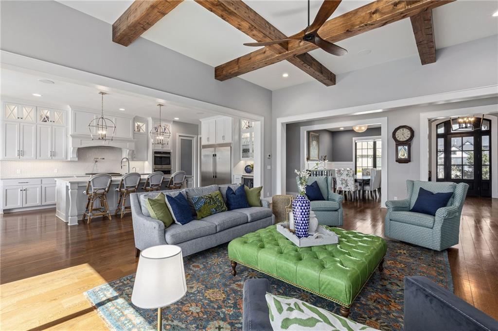 Your DREAM HOME in Mills Ranch in South Overland Park. This estate home offers a truly one-of-a-kind setting. Extensive landscaping ensures incredible privacy on the almost full acre lot adjoining greenspace—a rare find in a suburban neighborhood! Gorgeous 1.5 story home built in 2019 by Todd Hill Homes with high-end design & luxury finishes. Recent upgrades include ALL brand-new, top-of-the-line Pella windows, sliding doors, new carpet, & fresh designer wallpaper in the powder room & primary bedroom. The primary bedroom is a true retreat with ensuite bath featuring a deep soaker tub, & two walk-in closets recently upgraded with custom California Closets. The kitchen features beautiful white cabinets, oversized fridge, & walk-in pantry. Tucked away on this floor is a private office, a spacious laundry room, and a convenient mudroom (or "drop space") with built-in cabinets to hide all the day-to-day "stuff." Get ready to host—this house is perfect for entertaining! Enjoy seamless indoor/outdoor living with massive panoramic sliding doors off the living room. Step outside to the lanai with fireplace, terraced patio, & a top of the line 20x40 saltwater pool! It has all the bells and whistles: a lounge pad, water features, LED lighting—everything you could want! Upstairs, you'll find three spacious bedrooms, each with its own full bathroom. Also upstairs is a massive bonus room that you can use for anything—a second office, game room, or kids' playroom. Finished lower level includes two more bedrooms, 1.5 baths, a custom media wall, pool table area, & seating for everyone to catch the big games. The sleek wet bar features illuminated liquor shelves, a bev fridge, dishwasher, & marble bar that seats six. Don't miss the large, mirrored workout room. This is truly an extraordinary property that guarantees a lifestyle of absolute comfort and luxury. It sits on a quiet cul-de-sac surrounded by other exceptional homes. Don't miss out—schedule your private showing today!