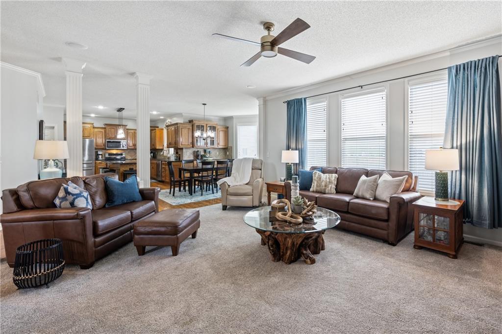 Come and Enjoy this Beautiful Home located in Spring Hill, KS! This Open Floor plan Home is truly an Entertaining Layout with great open space on the main level. Complete with a Dining Room, which could also be your main floor Office. Loads of Granite Countertops in this kitchen with a sizeable Island to serve your favorite summer dinners and desserts! A Large Pantry makes preparing your dinners a breeze! The kitchen has plenty of room for a sizeable dinner table. Wood floors complement the main level with carpet for the Family Room. Wood Burning fireplace with Bookshelves and Cabinets flanking the fireplace. The 86-inch mounted TV stays in place for your convenience!! Of course, as you read about the home you want to know about the big-ticket items…the HVAC was installed in 2021, New 50-gallon water heater with Thermal Expansion Tank installed April 2026, New Sump Pump installed April 2026. Fresh paint, updated lighting, updated carpet are just a few of the other improvements! A lengthy list of additional Updates is Available at the home. Upstairs you will find a sizeable Primary Bedroom that holds a King Size Bed. Large size Primary Bath with double sinks, tub and shower. Walk-in closet. Additionally, upstairs there are two additional full baths for the three bedrooms. The home has a 5th bedroom in the Finished Basement complete with an Egress window. Along with the Bedroom is a finished Rec Room also with an Egress Window. This brings great daylight into the rooms with no need for any additional lighting. Are you the keeper of all things and LOVE your storage space? You will be Thrilled with the 3 different storage spaces in the finished basement. Fresh paint and easy-care flooring make these a great space for family fun! The fenced backyard with a patio allows you to create your summer activities! The Neighborhood pool is at the entrance as you enter into the Subdivision. Welcome to your Next Home!!