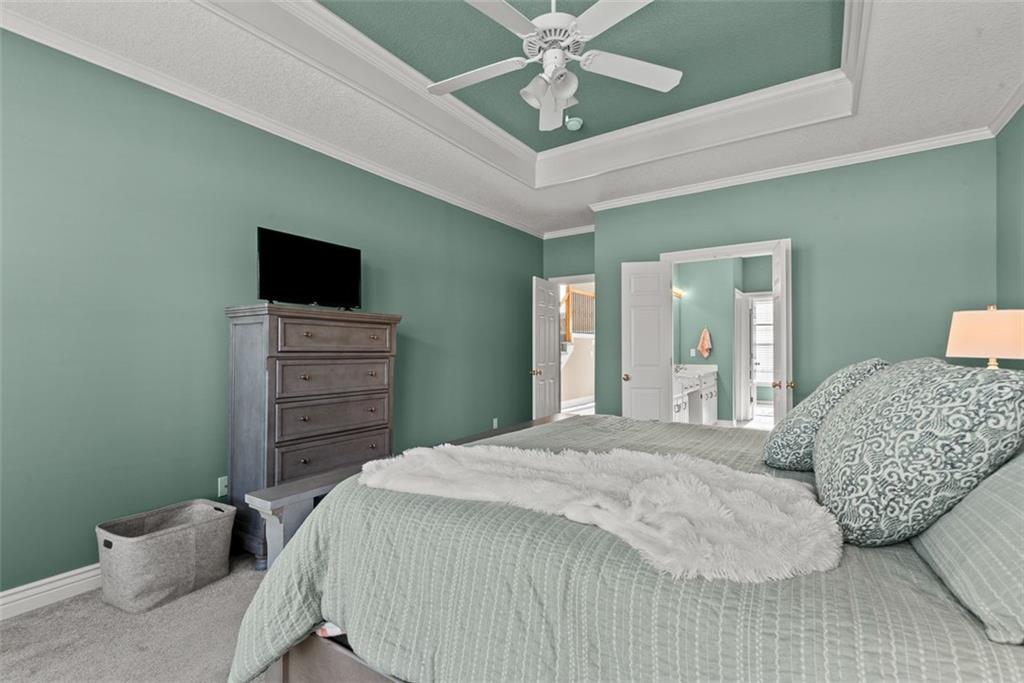 Experience the ultimate maintenance-provided lifestyle in this move-in ready 1.5-story villa perfectly positioned along the 13th fairway of the prestigious Prairie Highlands Golf Course. This thoughtfully designed open-concept floor plan features a rare main-level primary suite with laundry access off the kitchen, a modern kitchen and hearth room, and a formal living area ideal for entertaining. The versatile second-level loft—featuring brand new carpet—serves as a perfect dedicated home office or flex space, while the finished lower-level family room provides additional square footage with a built-in wet bar. Exceptional peace of mind comes with big-ticket recent upgrades, including a newer roof, HVAC system, and water heater. Enjoy serene golf course views from your private deck and a backyard equipped with an underground pet fence. Located in the highly-rated Olathe School District near Lake Olathe Park, this turn-key villa includes a comprehensive HOA covering snow removal, mowing, aeration, fertilization, and sprinkler maintenance, plus access to the community pool, clubhouse, and neighborhood restaurant. Above-ground fences are restricted to maintain the manicured grounds of this premier golf course community. Experience luxury, comfort, and a true lock-and-leave lifestyle in this exceptional Prairie Highlands home!
