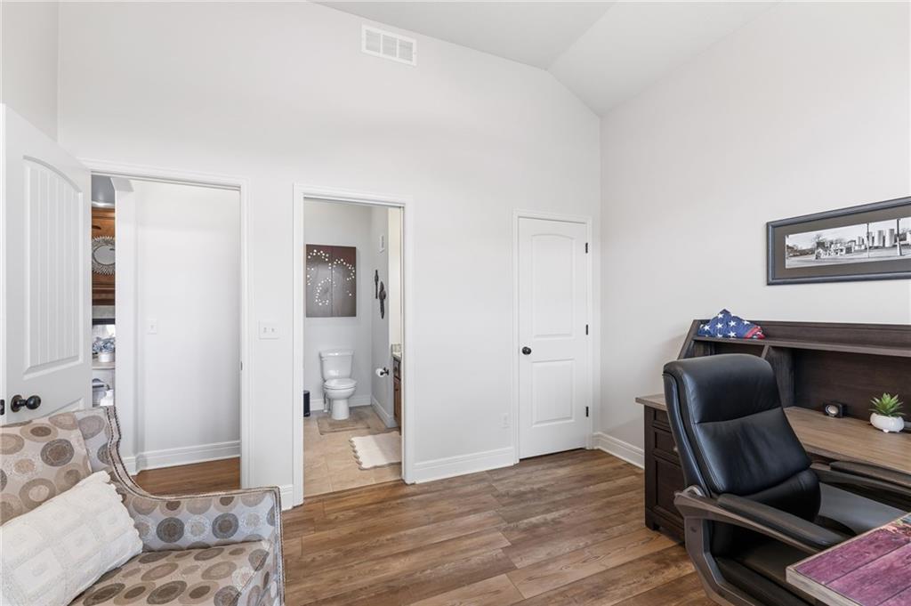 Welcome to this stunning former model home by James Engle Homes, showcasing the highly sought-after Emery reverse floor plan and loaded with gorgeous upgrades throughout. This beautifully designed 4-bedroom home offers the perfect blend of luxury and functionality. The main level features a spacious, light-filled great room with rich wood flooring and a striking see-through stone fireplace that extends to the covered, maintenance-free deck—creating a warm and inviting atmosphere both indoors and out. The gourmet kitchen is equally impressive, complete with granite countertops, double ovens, and a generous walk-in pantry, making it perfect for everyday living and entertaining. The luxurious primary suite offers a private retreat with dual vanities and a custom-tiled walk-in shower. The finished walkout/walkup lower level expands your living space with a large rec room, wet bar, two additional bedrooms, and a full bath—ideal for guests or entertaining. Step outside to enjoy exceptional outdoor living, including the covered deck with fireplace access and a beautifully designed stone patio with a fire pit, all backing to a serene tree line for added privacy. Additional highlights include a newer roof (just 2 years old) and access to fantastic neighborhood amenities, including a community pool. This home truly offers comfort, style, and convenience—don’t miss your opportunity to make it yours!