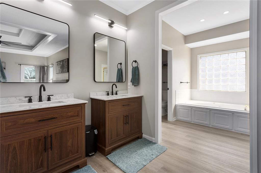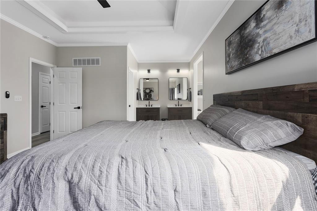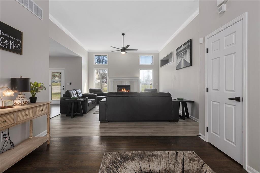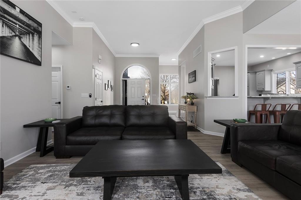 Rare find! Beautifully renovated 5 bed, 3 bath home in the desirable Summit Wood subdivision, located within the highly sought-after Lee’s Summit School District. This home offers a spacious and open floor plan with soaring ceilings, abundant natural light, and a stunning great room featuring a gas fireplace and large windows. The kitchen is designed for both everyday living and entertaining with solid surface countertops, stainless steel appliances, ample cabinetry, and great workspace. The adjoining dining area flows seamlessly, creating a functional and inviting layout. The main floor primary suite serves as a private retreat with a spa-like en-suite bath featuring dual vanities, a soaking tub, and separate shower. Additional bedrooms provide flexibility for guests, office space, or a growing household. Main level laundry adds convenience and ease of living. The finished lower level offers a large second living area, perfect for entertaining, a media room, or recreation space, along with additional bedrooms and full bath. Enjoy great curb appeal, a spacious 3-car garage, and a well-maintained yard. Located in Summit Wood, a well-maintained neighborhood with an established HOA, and convenient access to I-70, shopping, dining, and the greater Kansas City metro.