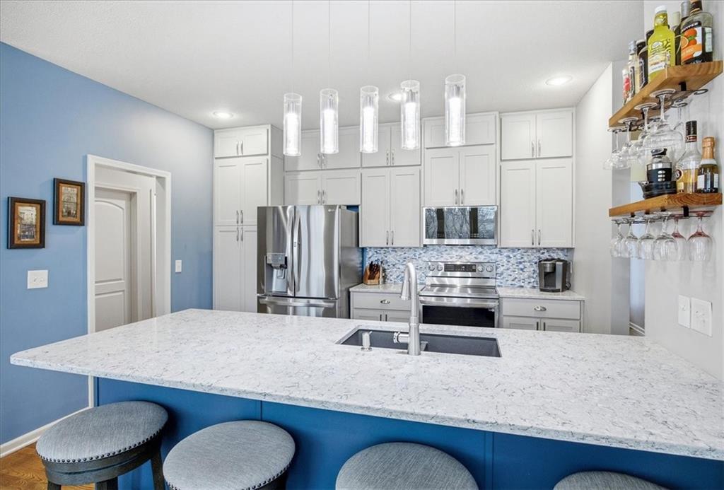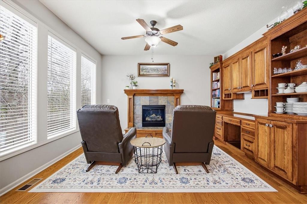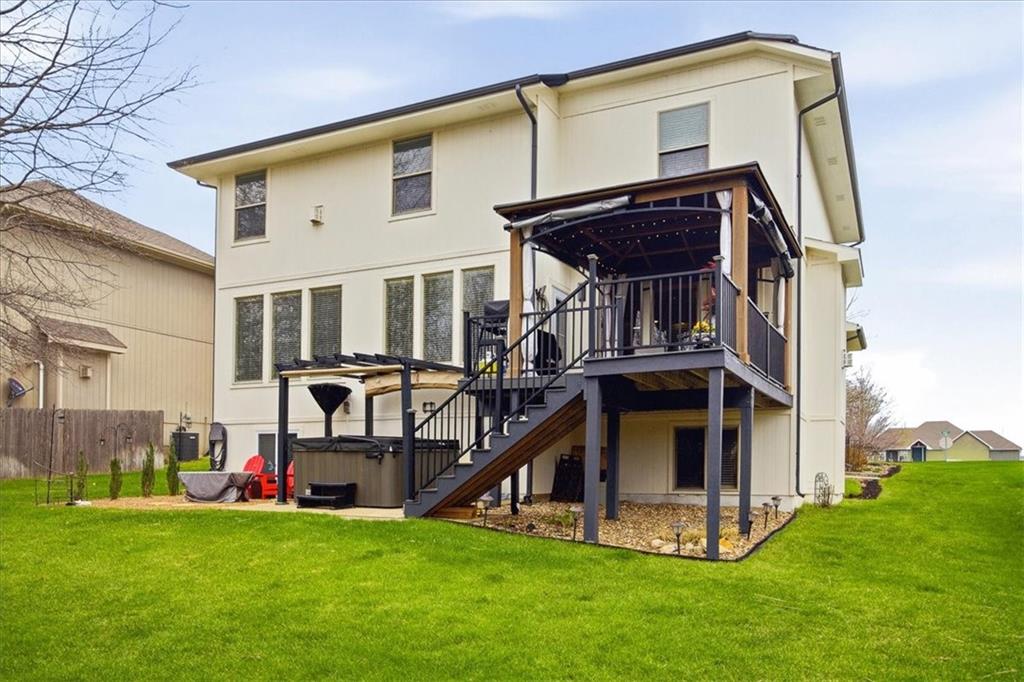 Stunning Updated 2-Story Home with Finished Basement! Welcome home to this updated 4-bedroom, 3.5-bath home in the highly desirable Megan Valley subdivision—a quiet, family-friendly neighborhood just minutes from Celebration Park and Gardner Edgerton schools. The open main level is designed for both everyday living and entertaining, featuring a spacious living room with fireplace, main level office, a cozy hearth room with a second fireplace with builtins and a generous dining area. The remodeled kitchen is the heart of the home, showcasing quartz countertops, LG appliances, abundant cabinetry, and modern lighting. The main level laundry room and mudroom are off the garage, and updated half bath add convenience and function, while fresh interior and exterior paint and new carpet create a move-in-ready feel. Upstairs, you’ll find four spacious bedrooms and three full baths, including a Jack-and-Jill bath and a private en suite for the fourth bedroom. The luxurious primary suite offers a large bedroom with a sitting area and third fireplace, plus a spa-like bath featuring a Jacuzzi tub, separate walk-in shower, and a generous walk-in closet. The finished basement provides flexible living space—perfect for a rec room, home gym, or media area—along with ample storage. Step outside to enjoy the newer composite deck with stairs, charming gazebo, and patio area—all overlooking a private, backyard that backs to a peaceful tree line with no homes behind. It’s the ideal setting for relaxing evenings, kids at play, or entertaining guests. Additional highlights include a high-impact composite roof (replaced in 2020) and sprinkler system and covered deck. Don’t miss this opportunity to own a move-in-ready home in a welcoming neighborhood with a true sense of community, excellent schools, and easy access to parks and local amenities.