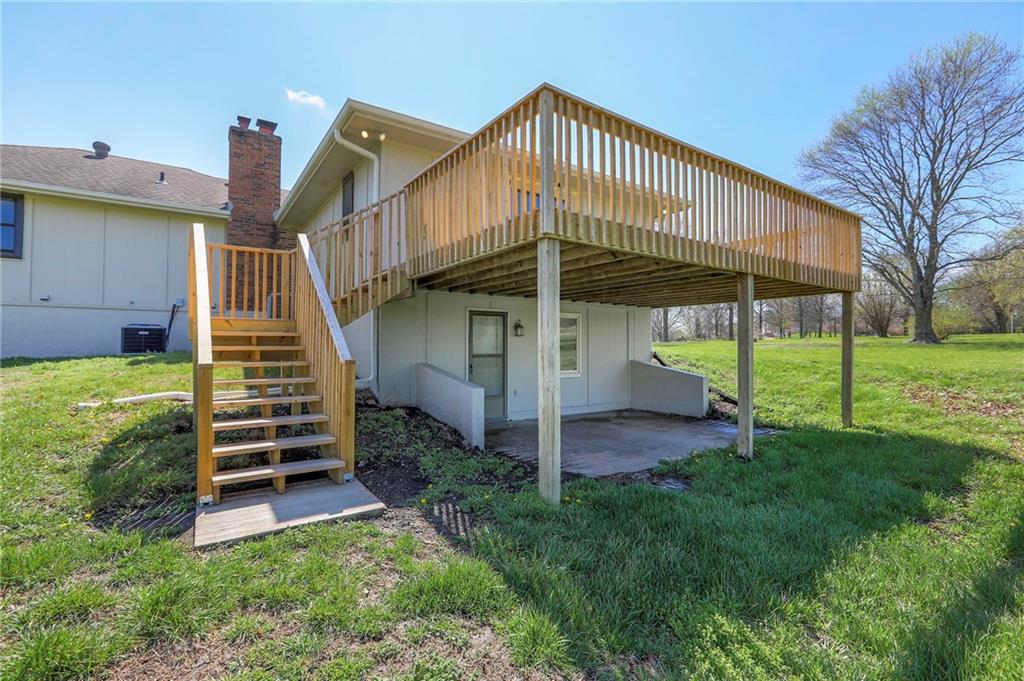 Situated on 4.28 acres, this versatile property offers beautiful outdoor features and plenty of space to enjoy country living. The large stocked pond with dock is perfect for relaxing or fishing, and the 35 x 40 outbuilding includes a new roof, office space, concrete floor, and electricity — ideal for a workshop, storage, or hobbies. Inside, the home features an open floor plan with plenty of room to spread out. The main level includes a formal dining room, living room with fireplace, kitchen, and a large family room that opens to a spacious new deck. Bedrooms and bathrooms on the main level have been recently updated, and there is a convenient main-level laundry room. All windows were replaced in 2019. The finished walkout lower level provides even more living space, including a large family room, second laundry room, and garage access. Two large non-conforming bedrooms downstairs offer great flexibility for guests, office space, or hobby rooms. With generous indoor and outdoor living space, this property offers room to live, work, and play — all in one place. Buyers and buyer's agent to confirm taxes, room sizes, all information and school districts.