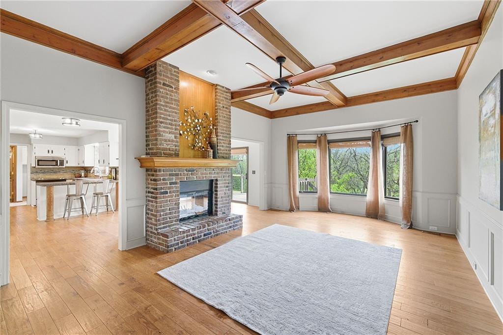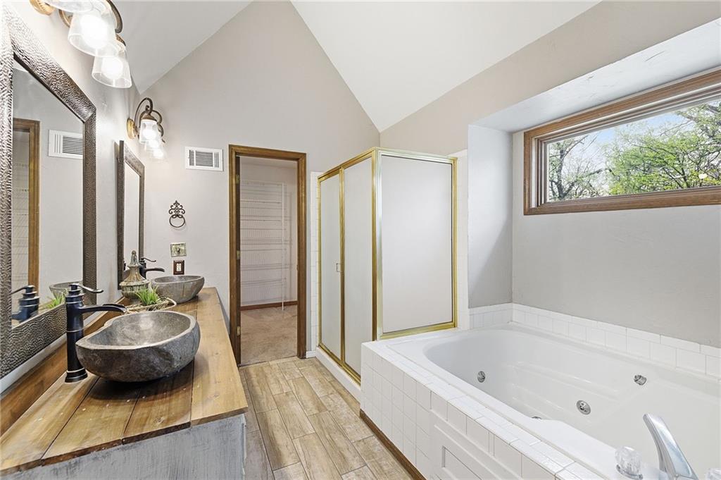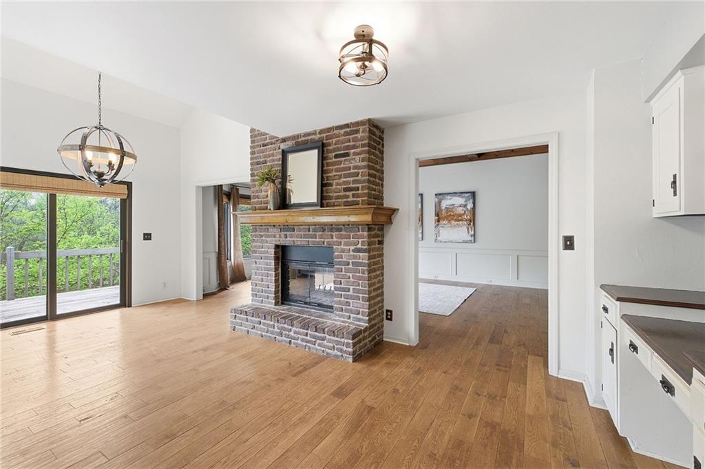 Nestled on a sprawling 1.24 acre wooded lot this stunning 1.5-story home offers the perfect blend of natural serenity, wildlife and sophisticated living. The main level is a host’s dream, featuring a formal dining room, a sunny breakfast area for casual mornings, a cozy hearth room, and large great room all flow together to create the perfect environment for entertaining. Imagine cozy evenings anchored by the fireplace or mornings on your private deck overlooking a peaceful creek and mature trees. The home features a spacious main floor primary suite, while the second level is thoughtfully designed with three large bedrooms, including one complete with its own private bath and walk-in closets. To maximize productivity and versatility, the upper level also includes a dedicated office space, offering an ideal setup for working from home or a quiet study library.The living space extends into a massive walk-out finished basement, providing the perfect footprint for a media room or recreation hub. Beyond the main home, the property is a dream for the hobbyist, featuring a large pole barn perfect for a workshop or additional storage. Located in the award-winning Blue Valley School District, this is a rare opportunity to own a private acreage retreat that perfectly balances grand entertaining with a peaceful, wooded escape. Welcome Home! Taxes and SqFt per county record. Room sizes approx. No preferences or limitations or discrimination because of any of the protected classes under Fair Housing.