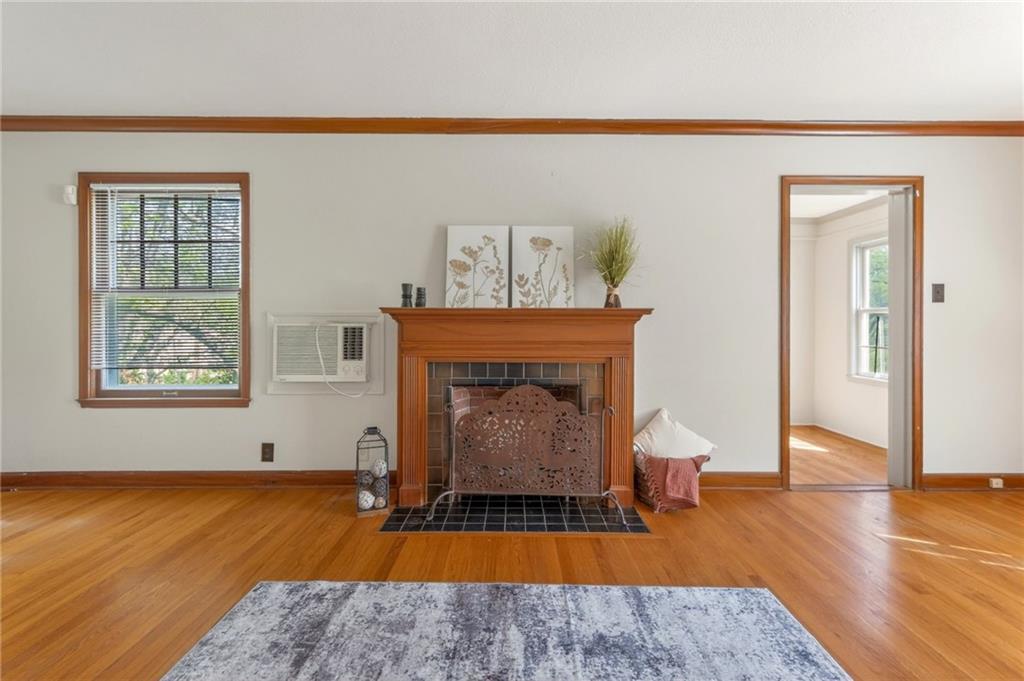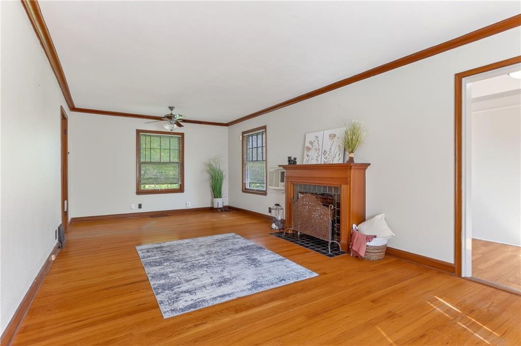 Solid 1.5-story home in the Cooley Highlands neighborhood of KC North offering character, space, and great potential. Beautiful original hardwood floors run throughout much of the home, with just over 1,000 square feet ready for your personal updates and finishing touches. The main level features a cozy living room with fireplace and custom mantel, adjacent sunroom or den, primary bedroom, full bath, and roomy kitchen. Upstairs, the expansive loft-style second bedroom offers flexible space for a bedroom, office, playroom, or hobby area. Ample fenced backyard provides room to enjoy outdoors. The home has Central heat and air conditioning, the window units are supplemental. Convenient location close to shopping, schools, and easy highway access. A solid home with great bones and an excellent opportunity to build equity with a little TLC.