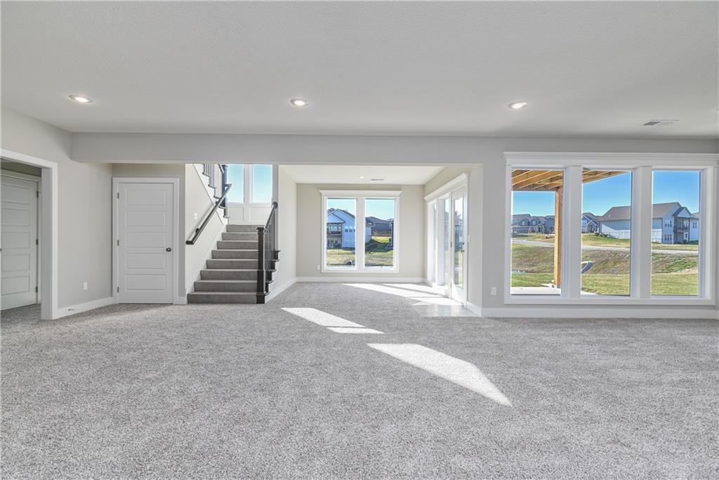 This home is perfectly situated at the end of a quiet cul-de-sac, adjacent to a public golf course. The stunning Reverse 1.5-Story Aspen by Prieb Homes offers a spacious, open floor plan filled with impressive details throughout. Soaring vaulted ceilings with stained beams and striking stonework surrounding the fireplace create a grand first impression upon entry. The kitchen is designed for both entertaining and everyday living, featuring a massive granite center island and ample workspace. The primary suite serves as a relaxing retreat, complete with an adjacent bonus office space and a conveniently located laundry room with built-in cabinetry. The spa-like primary bath includes a custom shower and separate vanities. The finished lower level expands the living space with a wet bar, two additional bedrooms, and a full bathroom—perfect for guests or recreation. Step outside to the large covered 14x12 deck and enjoy peaceful views. Room sizes and taxes are estimated, and some features may not be available in this spec home. Buyer’s agent to verify all information. Some Pictures are of completed plan, decor selections and front elevation orientation to vary. Expected completion June 2026