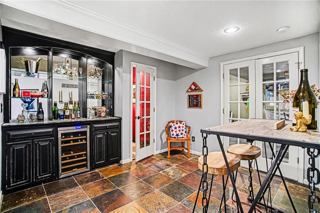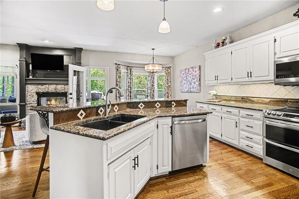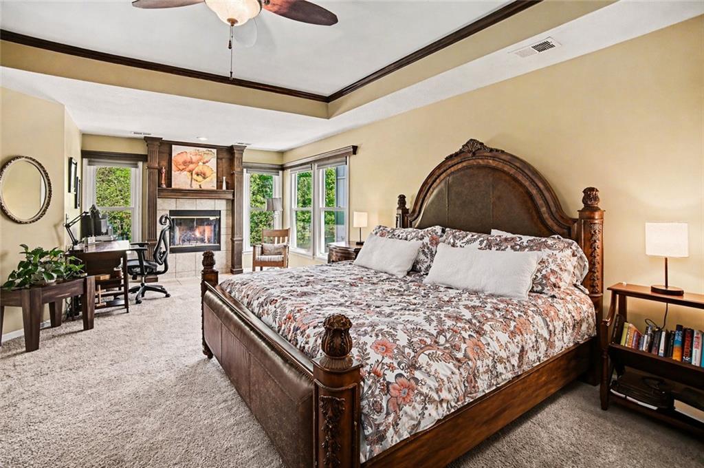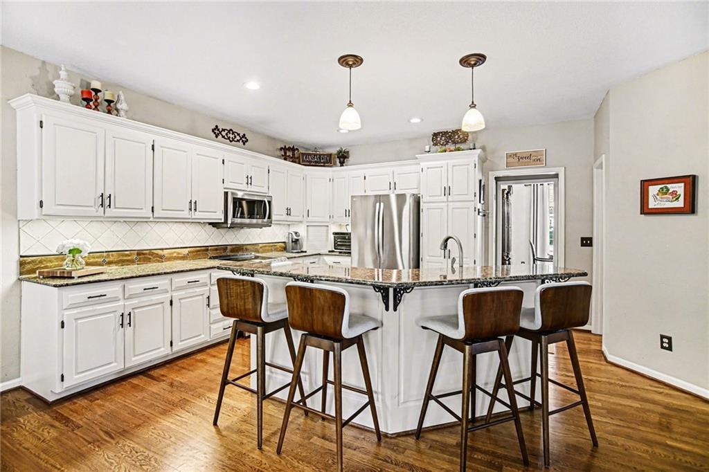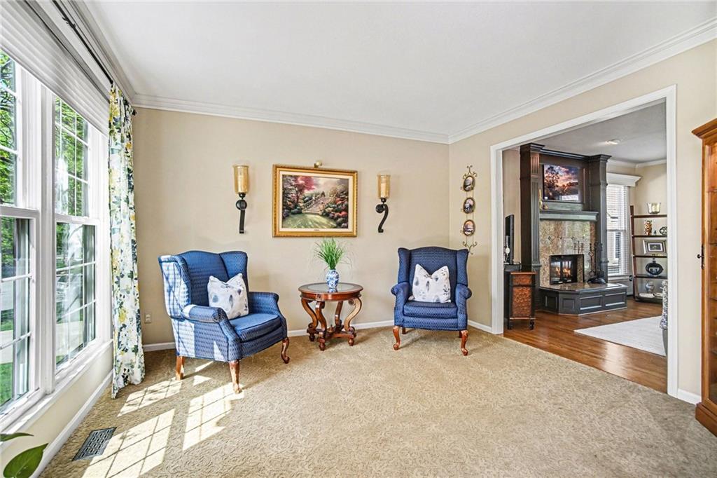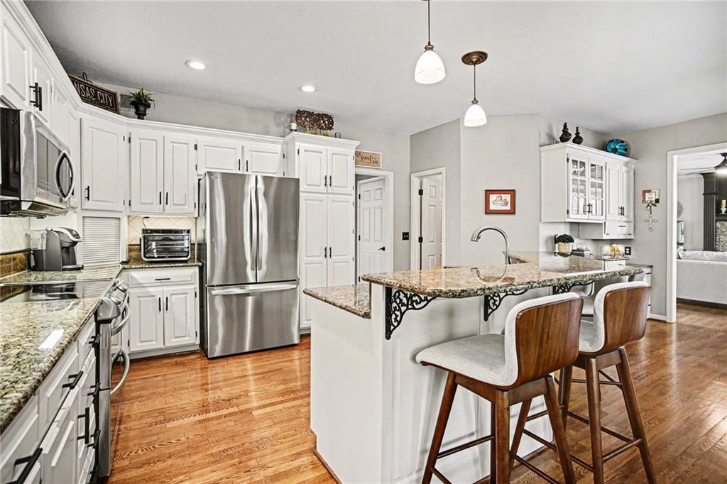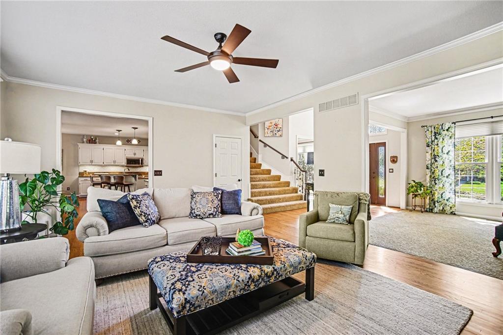 Stunning 2 Story home in Wynnewood! Well-maintained and beautifully updated throughout. Inviting two-story entry. Large great room with hardwood floors and a cozy fireplace. Formal living room and dining room. Beautiful kitchen and hearth room with a fireplace, hardwood floors, center island, stainless steel appliances, granite countertops, and a breakfast area. Amazing sun room off the kitchen/hearth room with a see-through stone fireplace. Huge primary suite with a sitting area and fireplace, one secondary bedroom with private bath, and two additional bedrooms with a Jack and Jill bath on the second floor. Finished lower level with a family room, great bar area, non-conforming bedroom/bonus room, and a full bath. The backyard is an entertainer's paradise, beginning with the sun room, leading to the deck, and a gorgeous custom travertine patio with an outdoor kitchen, fire pit, and an outdoor TV enclosure. NEW ROOF to be installed by closing! Three car tandem garage. Wonderful neighborhood amenities, including a pool. Great location in the highly-rated Blue Valley School District.