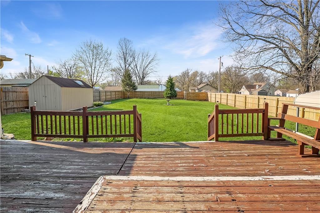 Great for first-time buyers or those looking to downsize! This cute 2-bedroom home offers one-level living with an attached garage. The pearl of the home is the spacious backyard, complete with a 6-ft privacy fence—perfect for relaxing or entertaining. Rear parking, a storage shed, all on a large lot. All appliances stay, and the eat-in kitchen adds to the home’s charm. Newer heating and cooling systems provide added comfort and peace of mind. Ideally located near the Harrisonville Square, parks, and schools.