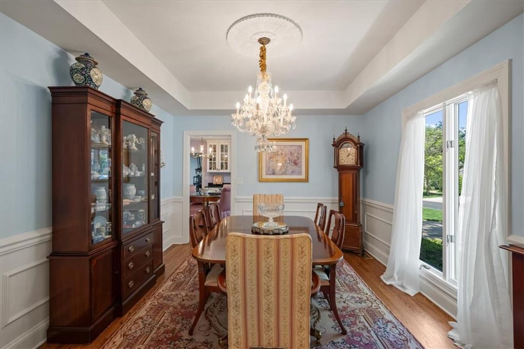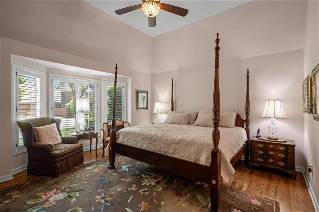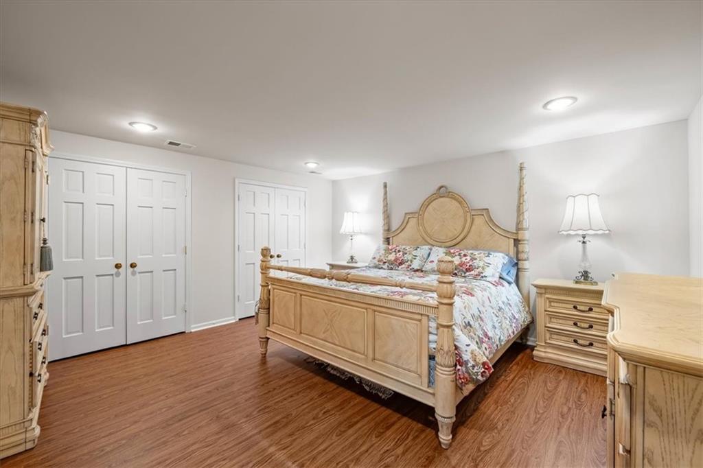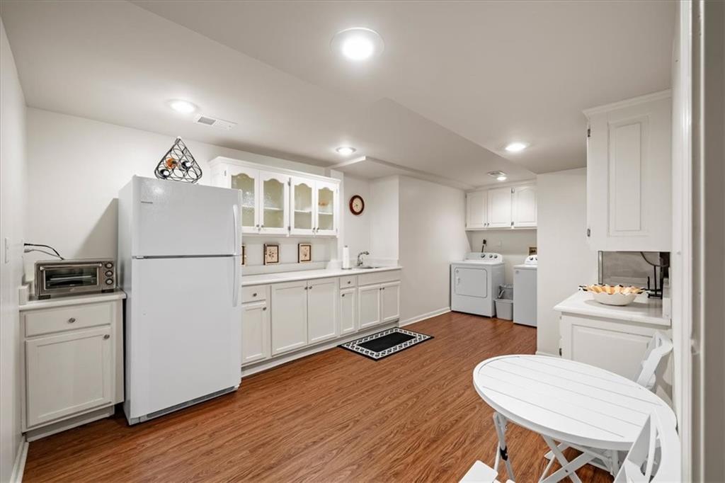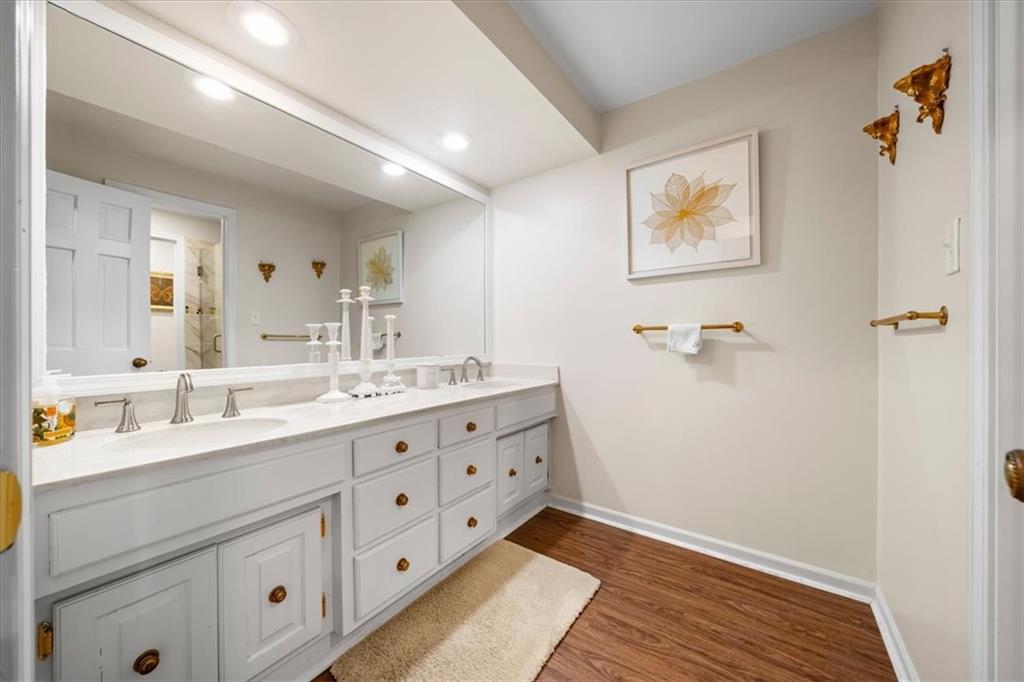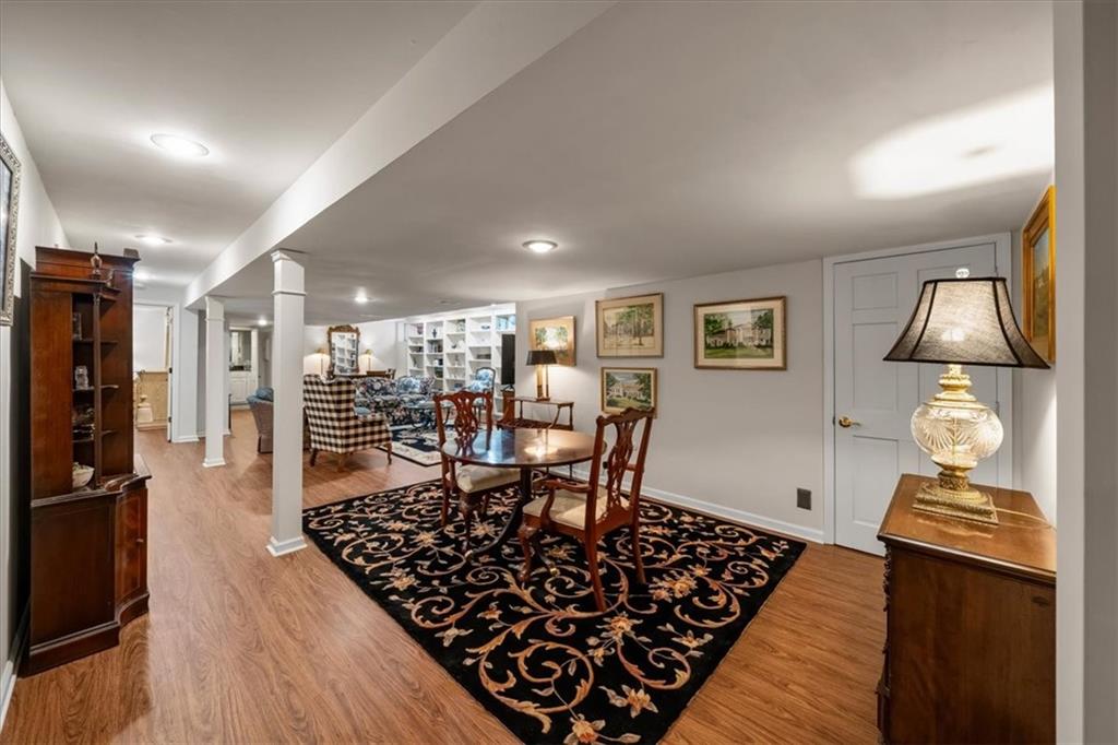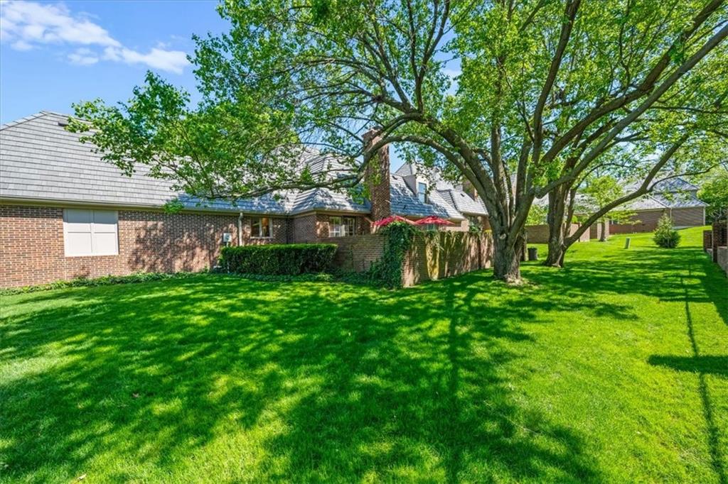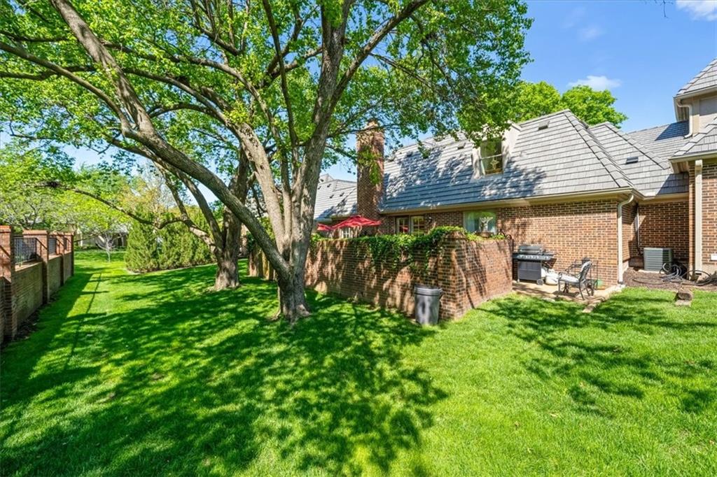 Experience maintenance-provided luxury in this fabulous 1.5-story home located in Corinth Downs. Boasting over 3,200 sqft of refined living space, a brand-new DaVinci roof, and zoned heating and cooling, this 3-bedroom, 3.5-bath home perfectly balances traditional elegance with a spacious, airy floor plan. The main level greets you with a grand foyer and a formal dining room featuring a tray ceiling and classic wainscoting. The soaring, vaulted living room, anchored by a stately fireplace and wet bar, is bathed in natural light, offering a seamless flow for entertaining. The kitchen is a chef's delight, featuring crisp white cabinetry, sleek black granite countertops, new stainless steel appliances, and a charming breakfast nook. Retreat to the main-floor primary suite, complete with a generous walk-in closet and a spa-like ensuite bath finished in exquisite floor-to-ceiling marble, featuring a glass-enclosed shower and a deep soaking tub. Main floor laundry is also available for your convenience. The upper level offers two additional bedrooms and a full bath, perfect for guests, a playroom, or a quiet home office. The expansive lower level significantly increases the home's footprint, offering a large recreation room with a second wet bar and dedicated dining area, an office, and a fourth non-conforming bedroom with a full bath. You will also find a secondary kitchen with an additional laundry room, offering unmatched storage and utility space. Step outside to a private, lushly landscaped brick enclosed patio, ideal for alfresco dining under the shade of mature trees. This home offers the perfect "lock-and-leave" lifestyle without sacrificing the scale and comfort of a traditional home.