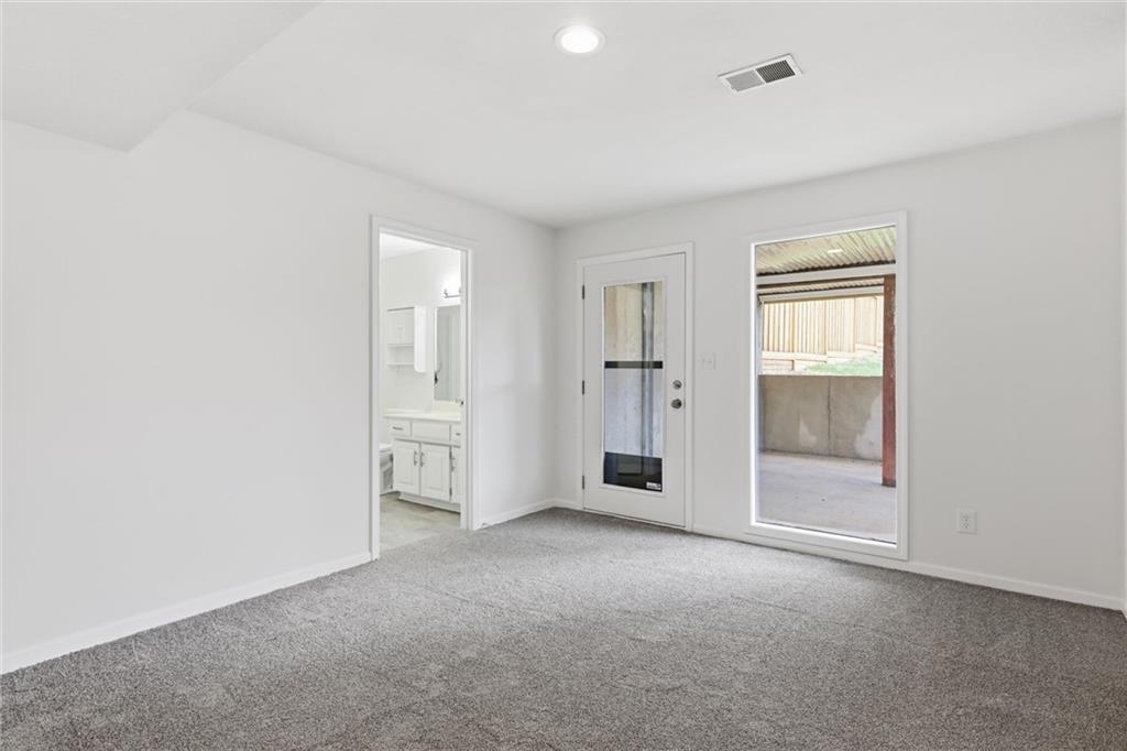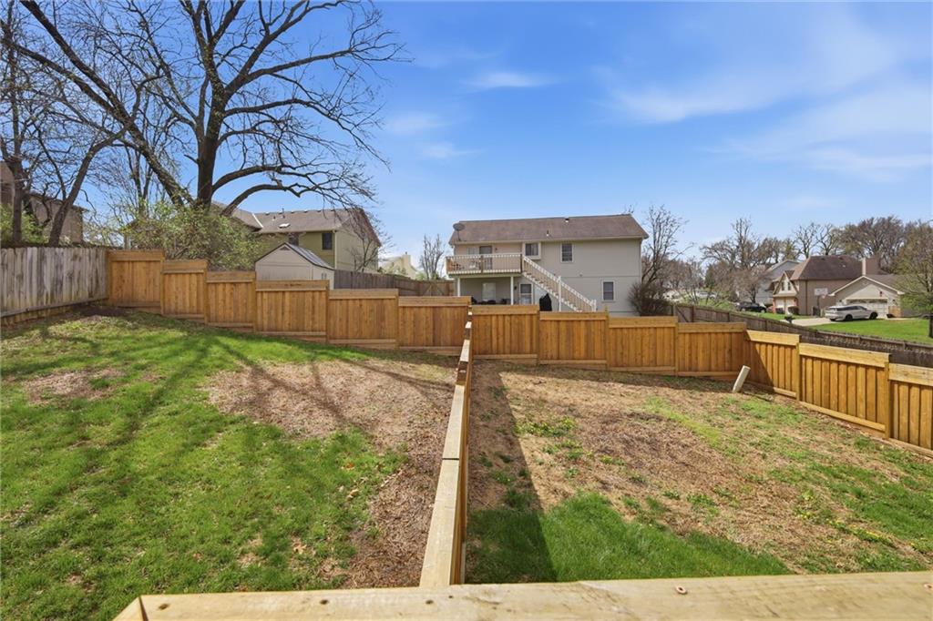 Welcome to 4109 NW 65th Street, nestled in the highly sought-after Seven Hills neighborhood within the Park Hill School District. This beautifully maintained split-level home offers 4 bedrooms, 3 full bathrooms, and nearly 2,000 square feet of finished living space — move-in ready from top to bottom. Curb appeal sets the tone from the moment you arrive, with warm wood-tone siding, a 2-car garage, and a welcoming front entry framed by a classic wood staircase. Step inside to an open dining and kitchen area featuring brand new flooring throughout, white cabinetry with glass-front uppers, tile backsplash, generous counter space, and a gas range — all flowing seamlessly to the brand new deck through a sliding glass door, perfect for indoor-outdoor entertaining. The primary suite impresses with soaring vaulted ceilings, a skylight, ceiling fan, walk-in closet, and a private en-suite bath. Additional bedrooms are spacious and bright, each with fresh new flooring and served by two full bathrooms with clean, updated finishes. A standout feature on the lower level is the charming barn door entry leading into the recreation room — an ideal flex space for a home office, playroom, or guest suite. The sub-basement provides ample unfinished storage housing all recently updated mechanicals. Out back, enjoy a brand new fence enclosing a generous yard paired with a freshly built deck — perfect for summer entertaining. Major systems updated include roof (2020), AC and HVAC (2022), and water heater (2023). Just 12–15 minutes from downtown Kansas City with easy access to I-29, this home delivers suburban comfort without sacrificing convenience. Don't miss it — homes in Seven Hills move fast!