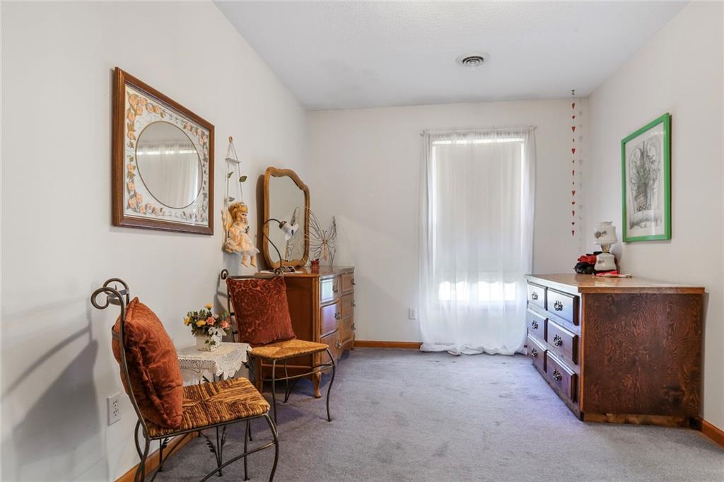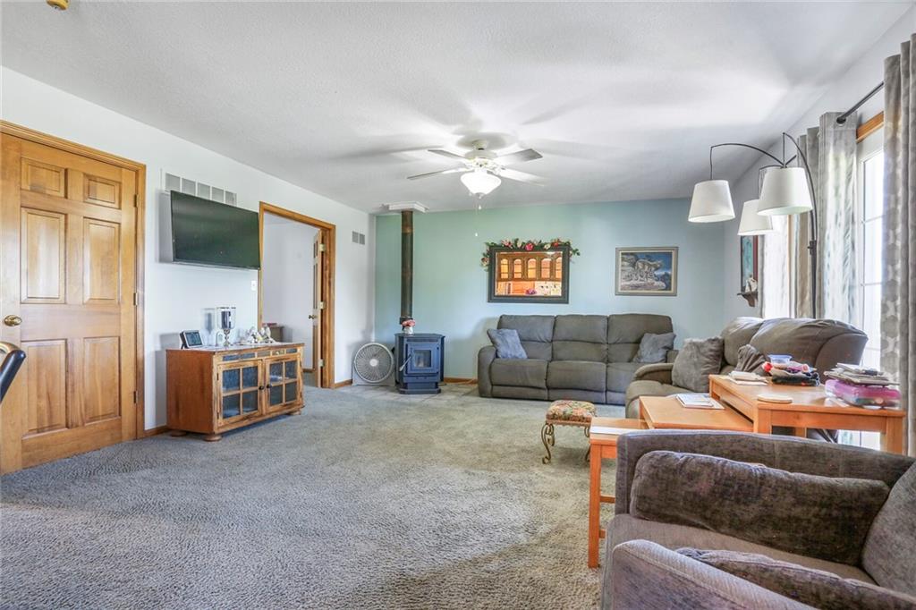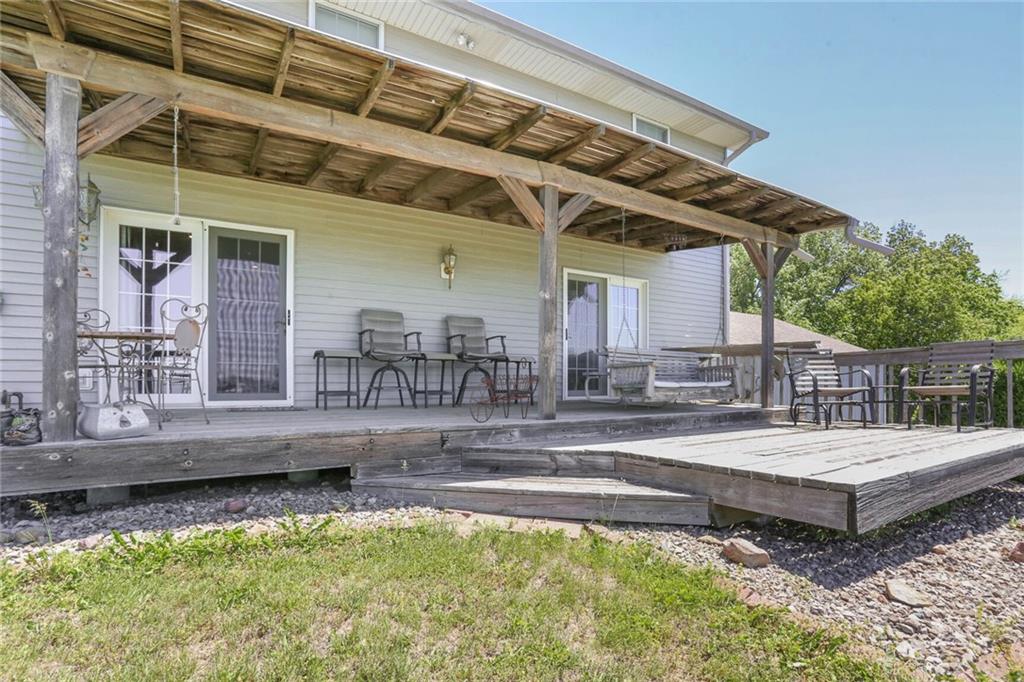 Welcome to your private oasis just outside the city limits! Nestled on nearly 25 picturesque acres on a paved road, this unique two-story home offers the best of both worlds—peaceful country living with the convenience of being just minutes from town and highway access. Step inside to a warm and inviting living room filled with natural light, featuring a cozy wood-burning stove. The open-concept design flows seamlessly into the kitchen, complete with tile floors, abundant cabinet and counter space, and a versatile bonus room just off the kitchen—perfect for a custom butler’s pantry or coffee bar. The dining area opens to an expansive deck, ideal for entertaining or simply taking in breathtaking views. You’ll even catch a stunning display of fireworks on the Fourth of July right from your deck! The main level also includes a dedicated office with French doors and custom built-ins, a convenient laundry room, and a half bathroom. Upstairs, the primary suite offers a tray ceiling, generous walk-in closet, cozy sitting area, and private bath complete with a whirlpool tub and separate shower. Two additional bedrooms and a full bathroom with tub and shower complete the upper level. The lower level offers ample storage and is ready to be finished to suit your needs-whether as additional living space, home gym, or game room. Enjoy the large outbuilding and shed for storage or hobby use. The property is ideal for nature lovers and hunters alike, with abundant wildlife and a charming bridge that leads to a gazebo—perfect for relaxing!