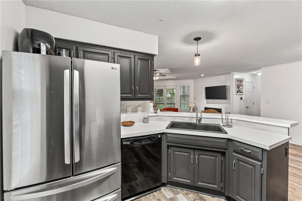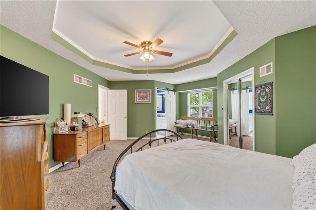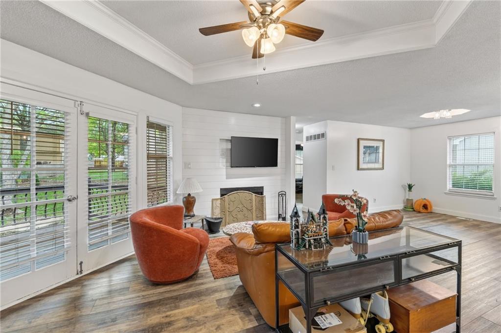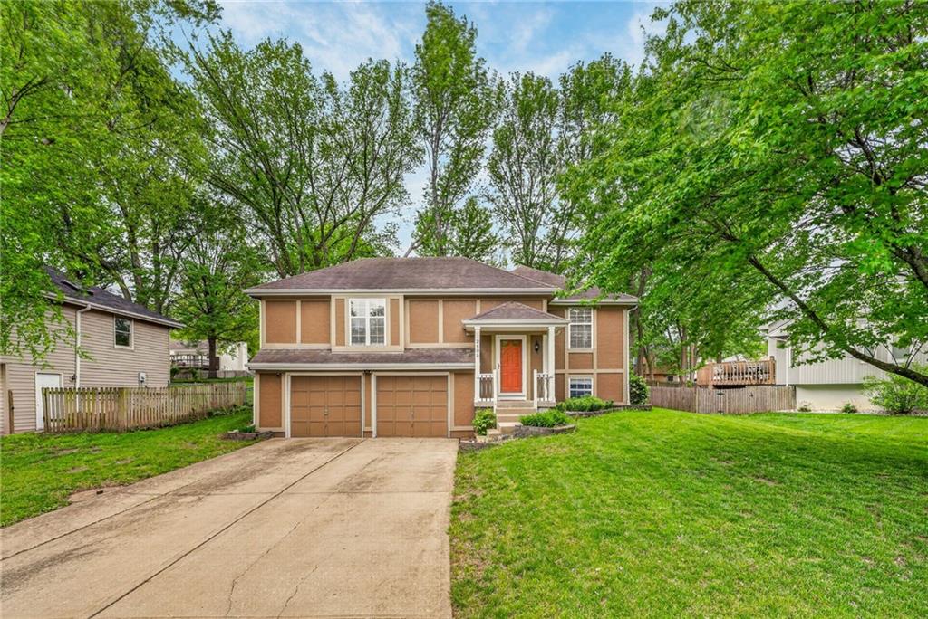 This beautifully updated property offers the perfect blend of comfort, style, and functionality. Recent improvements include a newer furnace and AC, newer water heater, whole home air purifier, gutter guards, remodeled bathrooms, updated fixtures, newer sump pump, smart garage door openers, whole home security system, new paint throughout, and recent repairs on the deck. New flooring going in the first week of May! The main living area features durable luxury vinyl plank flooring and an inviting fireplace, creating a warm and welcoming space. French doors lead to a spacious back deck, ideal for entertaining or relaxing while overlooking the fenced backyard. The kitchen is designed for both everyday living and hosting, complete with a farmhouse sink, pantry, stylish backsplash, and an open layout that flows seamlessly into the dining area. The primary suite is a true retreat with a tray ceiling, walk-in closet, and a beautifully updated private bath featuring tile finishes, double granite vanities, and a shower/tub combo. Two additional bedrooms and an updated hall bath provide plenty of space for family or guests. The finished lower level adds valuable extra living space, perfect for a second living area, home office, or rec room. Situated on a quiet cul-de-sac and within walking distance to Legacy Park, this home truly has it all.