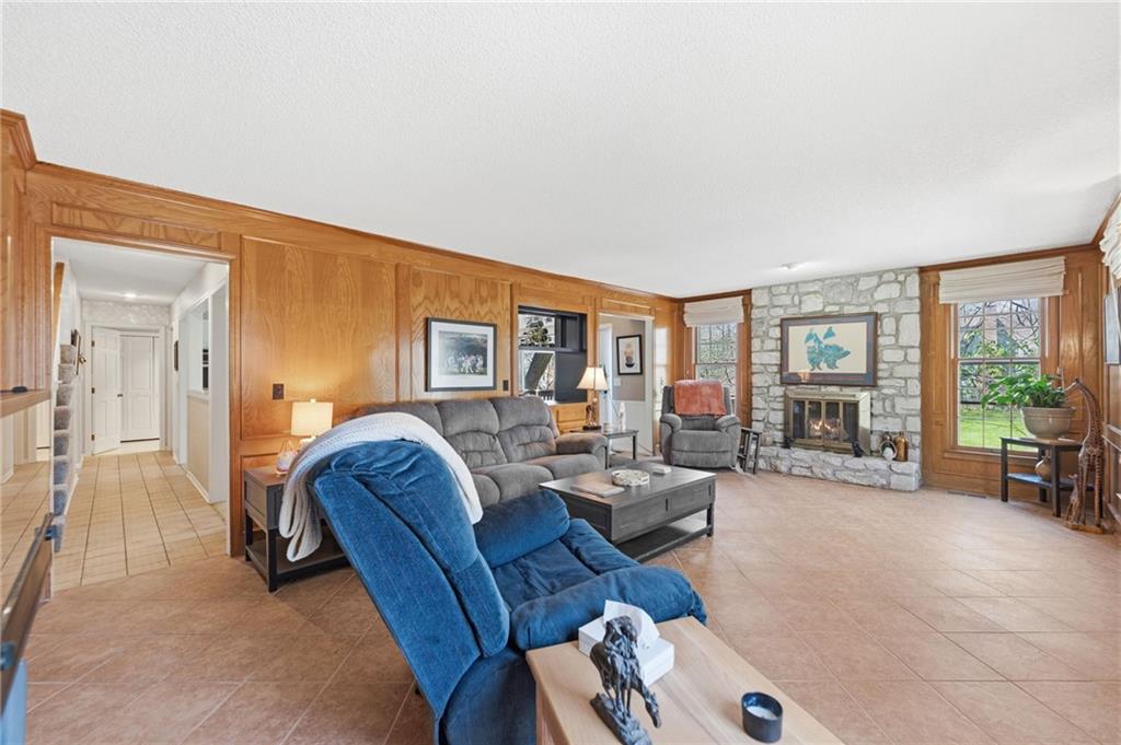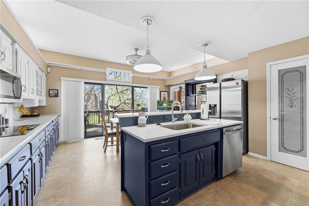 Experience refined living in this exceptional 1.5-story residence nestled in the sought-after Rolling Woods community of Blue Valley North. Boasting 5 spacious bedrooms, each with its own walk-in closet, this home offers both elegance and functionality at every turn. The beautifully appointed kitchen, with a breakfast area looking out over the back yard, features abundant cabinetry, a pantry, new countertops and flows effortlessly into a warm and inviting family room. Step outside to an expansive deck overlooking a private, picturesque backyard, perfect for upscale entertaining or quiet evenings at home. The finished walk-out lower level is an entertainer’s dream, complete with a generous recreation space, fifth bedroom, and full bath, ideal for guests or multigenerational living. Formal living and dining rooms provide timeless sophistication. Walls of tall windows bathe the home in natural light, enhancing its airy, open feel. With approximately 3,743 square feet, main-level laundry, and included appliances, this home offers both luxury and convenience.