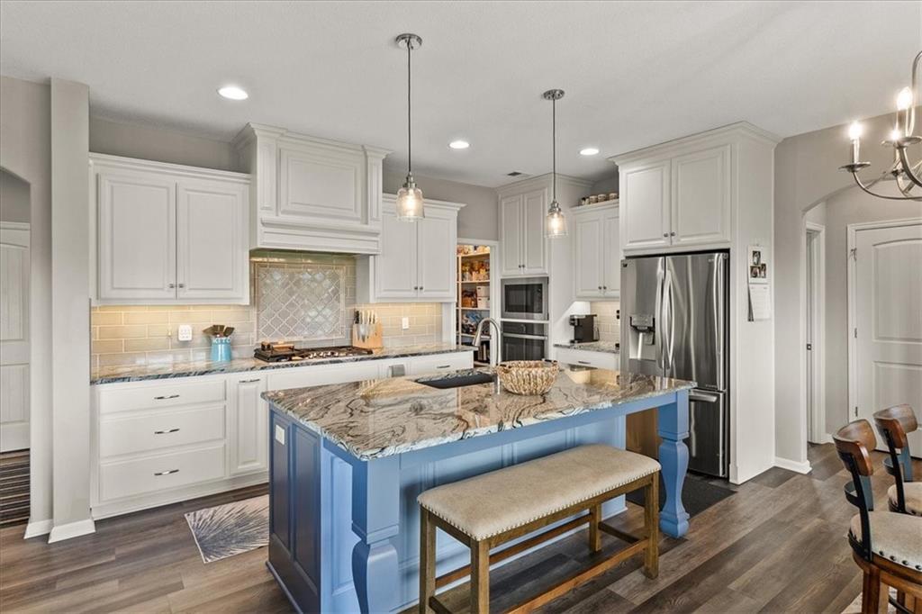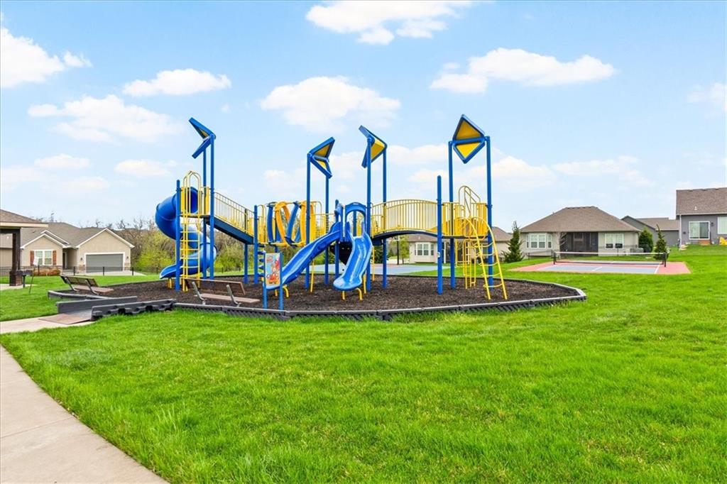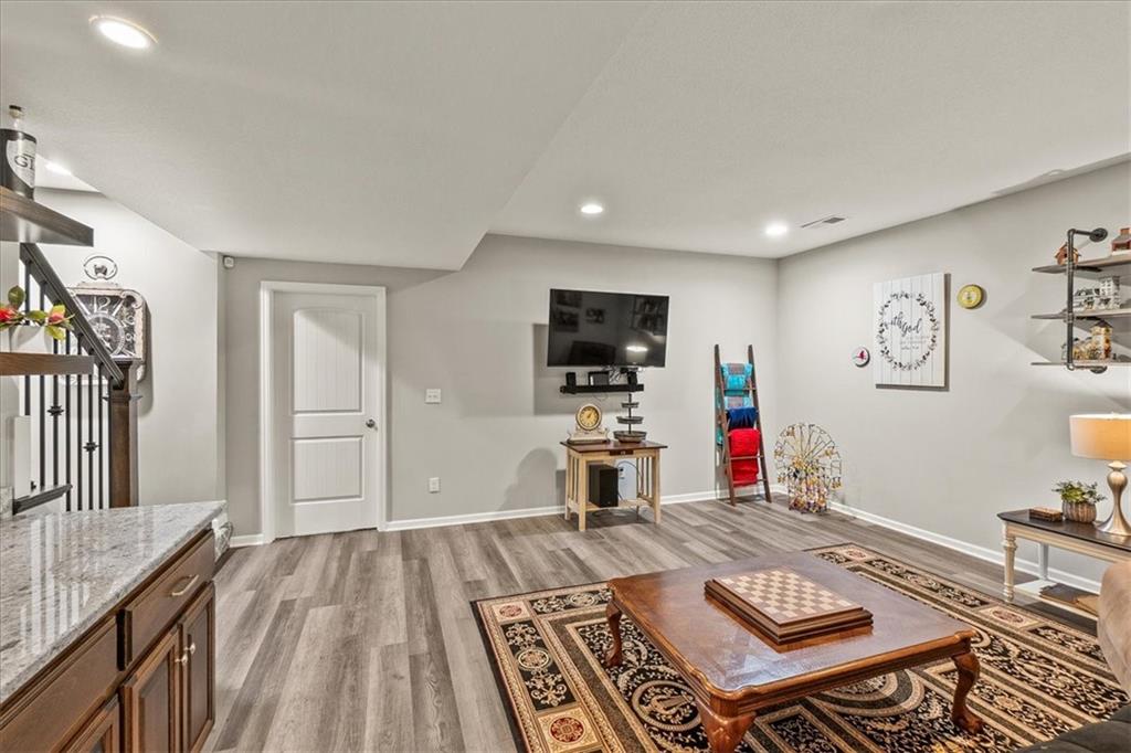 This house is better than new!! Over $40k in upgrades! Seabrook II plan, builder is Gianni Homes. Kitchen has granite counters, custom cabinets, & walk-in pantry. Stainless Steel Appliance, 5 Burner Gas Stove, convection oven with bluetooth! Gorgeous LVP Flooring that's scratch resistant. Great room is so bright and open with floor to ceiling fireplace & wood beams added to the ceiling. Custom blinds in upstairs rooms, Laundry in off the primary bedroom that walks through to the custom-built closet. The primary bathroom has a zero-entry huge shower with granite countertops. Lower level feels even more spacious with it's HIGH Ceilings, a wet bar, a 2nd family room, 2 more bedrooms, and a 3rd FULL bath! There are 2 large storage areas as well, perfect for a craft room or a home gym!! Fully fenced yard with a covered patio. Walking trails right behind the house, sprinkler system up front. The amenities include a community POOL, Pickleball Court, Sport Court, a Putting Green, TRAILS, a Playground, Walking Trails & more!! There is a brand new school, minutes away! This AMAZINGLY well-taken care of house is ready for you!!!! Hurry and come take a look, bc this won't last long as we priced it TO SELL!!!