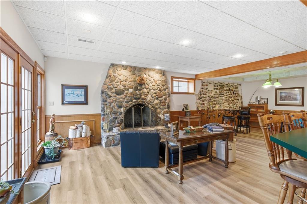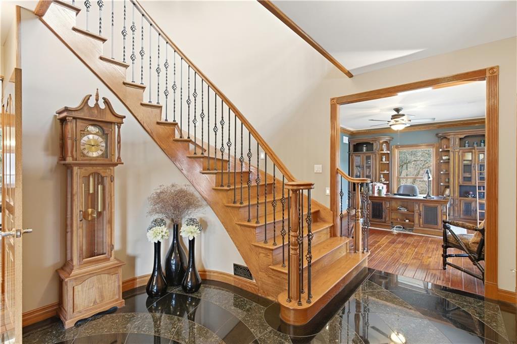 Welcome to your Dream Retreat in Columbia, Missouri! Nestled on 26 breathtaking acres, this one-of-a-kind property offers the perfect balance of luxury living and outdoor recreation. The land features a stocked private lake complete w/ islands and bridges, creating a stunning centerpiece that feels like your own private resort. Property is loaded w/ deer and turkey, making it an exceptional retreat for wildlife lovers and outdoor enthusiasts. The 7,500 sq ft custom home has been meticulously cared for and is filled w/ high-end features throughout. From the granite entryway, you’ll appreciate the craftsmanship and attention to detail, including hand-scraped teak floors, a stunning curved staircase, and 2 fireplaces. The home offers 4 spacious bedrooms and 5 bathrooms, along with a quiet study, large office space, abundant storage, and an attached three-car garage. The fantastic kitchen is built for both everyday living and entertaining, featuring a Wolf gas stove, high-end appliances, a hidden pantry, and generous storage space throughout. Just off the main living area, the sunroom provides the perfect place to relax and watch the wildlife, overlooking the incredible scenery this property has to offer. The luxurious master suite includes a spa-like bathroom equipped with heated floors, TV, coffee maker, and refrigerator, as well as a large walk in closet. The finished basement is designed for entertaining, featuring a spacious entertainment area along with a bar and small kitchen, making it the ideal place to host guests, watch the big game, or unwind after a long day. Outside, the property also includes a large two-story outbuilding with potential living quarters, providing endless possibilities for guests, a workshop, or additional storage. This rare 26 +/- acre estate truly offers the best of both worlds - a private retreat with incredible scenery, wildlife, and recreation located just 7 miles from downtown Columbia. Opportunities like this are incredibly rare!