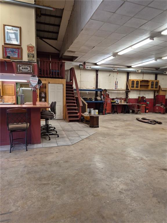 Gardner Lake living with first tier, lakefront home and large garage/outbuilding with living quarters. From the lakeside, the home has an oversized deck overlooking the entertainment area and dock. From the deck, you enter the home at the dining and kitchen area separated by a kitchen breakfast bar. Kitchen provides wood cabinets, stove, microwave, refrigerator and sink. Full bath with shower off the kitchen. The living room with fireplace finishes off this level. Take a flight of stairs up to the next level with the primary bedroom with builtins. The french doors open to an office area, closet and extra sleeping area. This is at street level. Exit to porch and carport. Cross the road to the outbuilding/garage with loft bedroom, kitchen, bath and laundry. The garage portion of the building has room for 4 cars and a car lift. There is a wood burning stove, a/c and furnace, industrial size air compressor and shelving. Two oversized garage doors. The building sets on a 15,399 sq ft lot per RPR.Properties are sold together with one address. Make your lake dreams come true!