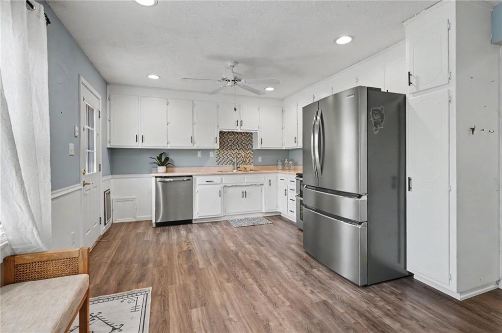 Charming and move-in ready 3-bedroom home in East Lawrence! This well-maintained property features updated LVT flooring, a bright and inviting living space, and an eat-in kitchen with stainless steel appliances and ample cabinet storage. Recent improvements include updated kitchen appliances, newer plumbing lines, sewer line replacement, a radon mitigation system, and added ceiling fans in the bedrooms. The spacious, fully fenced backyard offers great potential for outdoor living, pets, or gardening. Additional features include a 1-car garage and a 220V plug that can be used for an EV charger for added convenience. Ideally located near downtown Lawrence, KU, and local amenities, this home is a great opportunity for owner-occupants or investors alike.