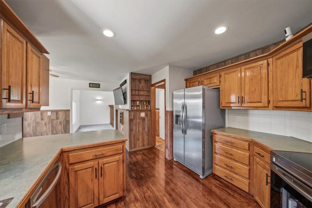 Meticulously maintained and quietly upgraded throughout, this Waterfield North home offers peace of mind from day one. Major improvements are already complete, including brand new stainless steel appliances, refinished woodwork, and new carpet in key areas. You can feel the care the moment you walk in. The main level is designed for real life, featuring a spacious primary suite, comfortable living areas, and a great room that naturally becomes the heart of the home. It’s a layout that works just as well for everyday routines as it does for gathering with the people who matter most. Downstairs, the walkout basement offers a completely different experience. A custom-built bar with reclaimed wood creates a warm, inviting space perfect for entertaining or a game night in. One of the standout features is the side entry garage, tucked privately along the home, offering a versatile setup for hobbies, storage, or a true car enthusiast space. A hidden attic accessed through a bedroom closet adds character and storage you rarely find. Out back, a newer deck overlooks the tree-lined fence and a tucked-away nook, giving you a quiet place to unwind or gather with friends and family. With the major updates already complete, this home offers a rare balance of move-in readiness and long-term potential in a highly desirable neighborhood.