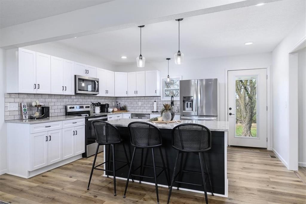 WOW.. this one is a stunner! Right north of Leavenworth on a paved road you will find this STUNNING newly remodeled from TOP to BOTTOM. This 3 bed 2 bath home sits in the Easton School District on a gorgeous 1.5 acre piece of countryside! Step Inside where you will find an open floor plan offering tons of natural light with beautiful finishes to include luxury vinyl plank flooring throughout, granite countertops, eye catching white cabinets and stunning island in the kitchen. Enjoy the oversized master suite with an attached master bathroom and walk-in closet. 2 generous sized additional bedrooms offer additional space for the kids or a guest room for hosting. Downstairs you will find a blank slate to add additional living space.. the options are ENDLESS. Come outside to where you be greeted with a large concrete patio for grilling and hosting events and a 40x30 shop with two garage doors for all your storage and working needs! Total remodel was completed in 2024, HVAC, ROOF, SEPTIC are all new in 2024 and shop and additional driveway were added in 2024. This home offers all the new build perks without the price tag of a new home! You are going to want to come visit this home today and see what living in the country feels like, just in time for the summer!