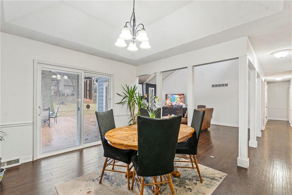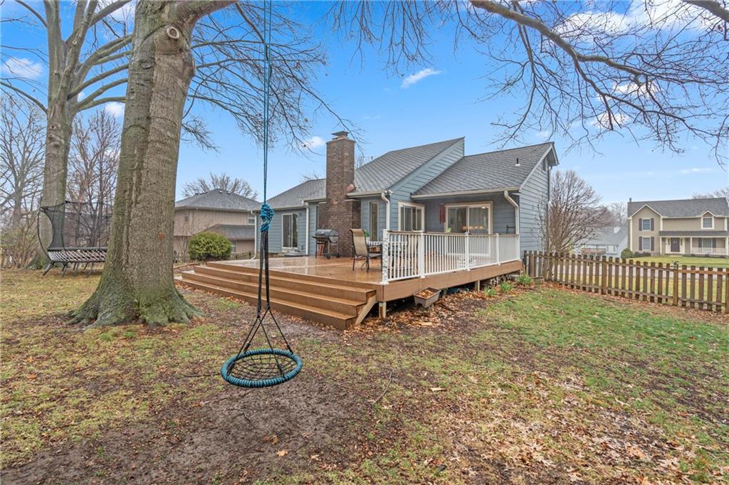 This 4-bed, 3-bath home in the coveted Lakewood community offers a blend of move-in ready comfort and resort-style living. It is situated on a generous 0.3-acre treed lot, providing a peaceful retreat with mature landscaping. The home features a modern kitchen with custom cabinetry and granite countertops. Enjoy spacious living areas, vaulted ceilings in the great room, two cozy fireplaces and the energy efficiency windows offers plenty of natural light. The main-floor includes the master suite with a walk-in closet and two additional bedrooms, kitchen, dining room, great room and access to the backyard. Downstairs you'll find a finished basement with the 4th bedroom, full bath, laundry room, family room and two car garage. Outside, relax on the private patio within a large, wood-fenced backyard perfect for pets or entertaining. The Lakewood Lifestyle: Access to private lakes for no-wake boating (pontoons, kayaks, paddleboards), fishing, and a sandy swim beach. Also enjoy tennis courts, pickleball, sand volleyball courts, swimming pools and much more. This home is located within the highly-rated Lee's Summit School District