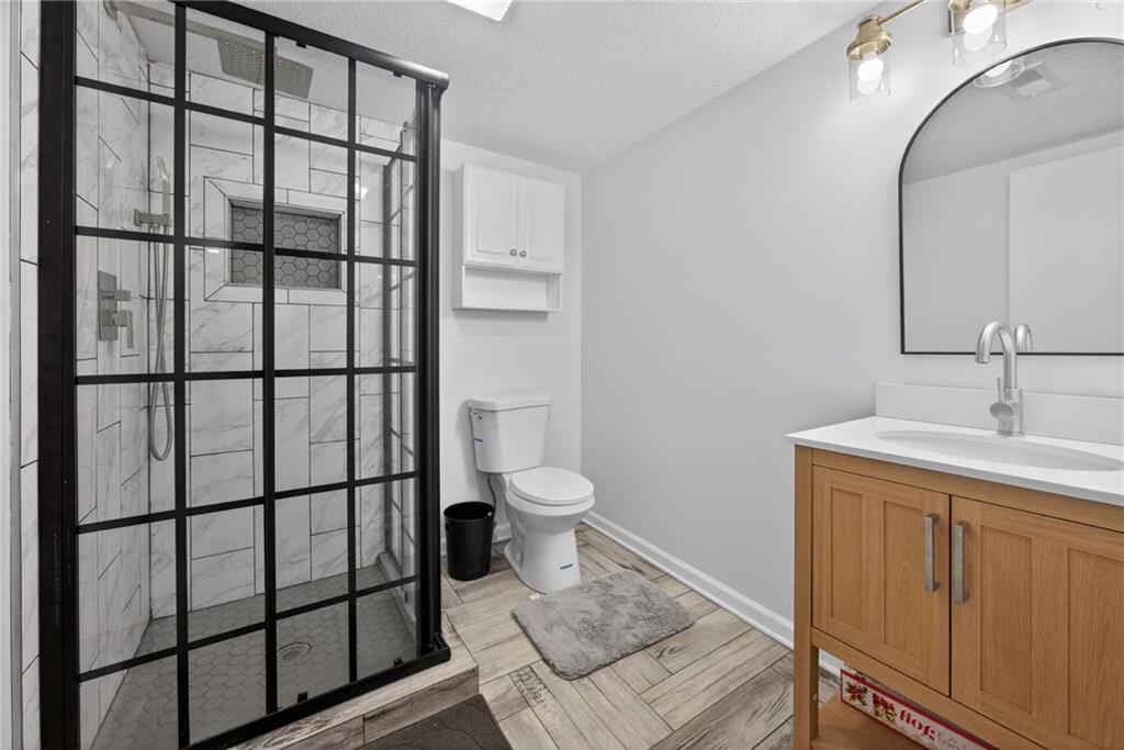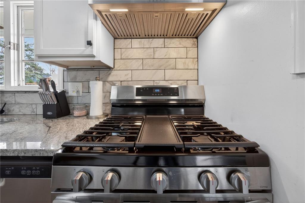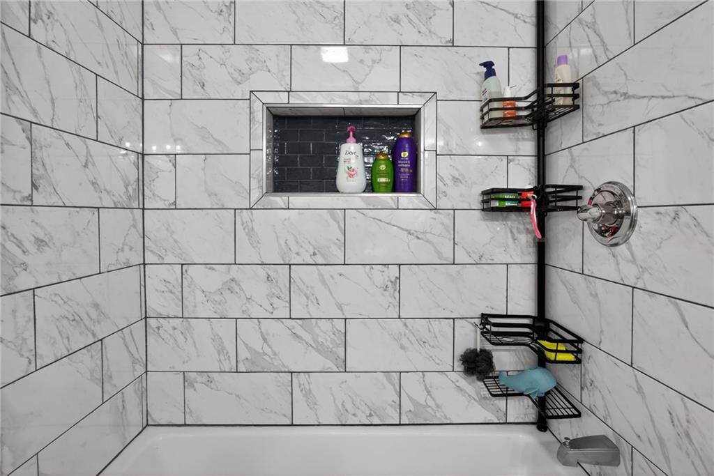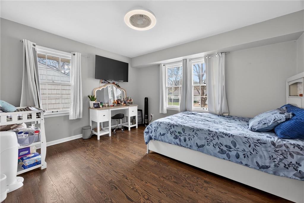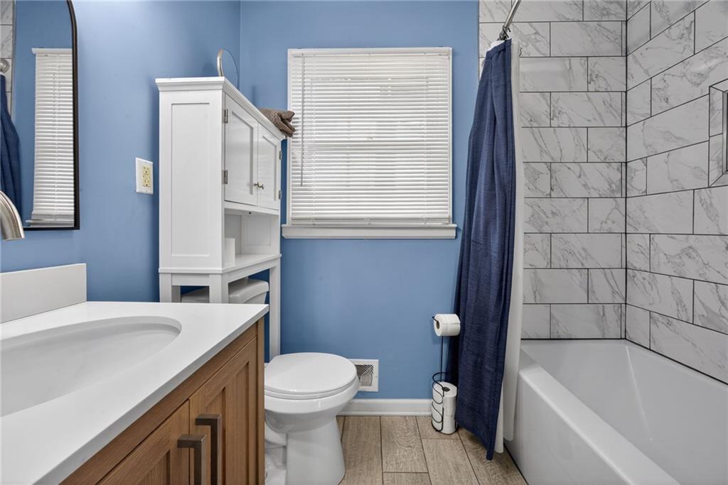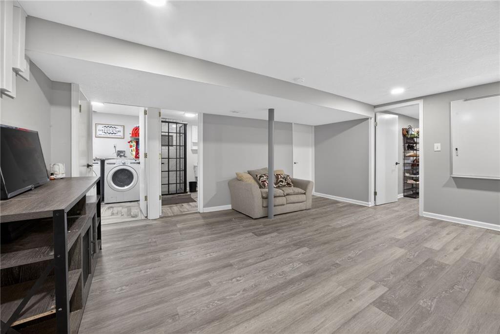 Welcome home to this thoughtfully updated ranch offering modern style, functional space, and true move-in ready living. Refinished hardwood floors and fresh interior and exterior paint create a bright, welcoming feel throughout the main level. The open kitchen features granite countertops, stainless steel appliances, and a convenient pass-through to the living room, allowing for easy entertaining and everyday connection. The adjoining dining area enhances the home’s open, comfortable layout. Both bathrooms have been beautifully renovated with ceramic tile, updated vanities, and contemporary fixtures, delivering a clean, modern look buyers love. A dedicated laundry room with stylish herringbone tile adds both character and practicality. The finished basement expands the living space with a versatile second living area or rec room — ideal for movie nights, a home office, fitness space, or guests. Step outside to enjoy the deck overlooking a large fenced backyard, perfect for relaxing or entertaining, plus a storage shed for added convenience. The spacious garage provides additional storage and functionality. Located close to highways, shopping, dining, and everyday amenities, this home offers the perfect balance of updates, space, and accessibility. A turnkey opportunity you won’t want to miss!
