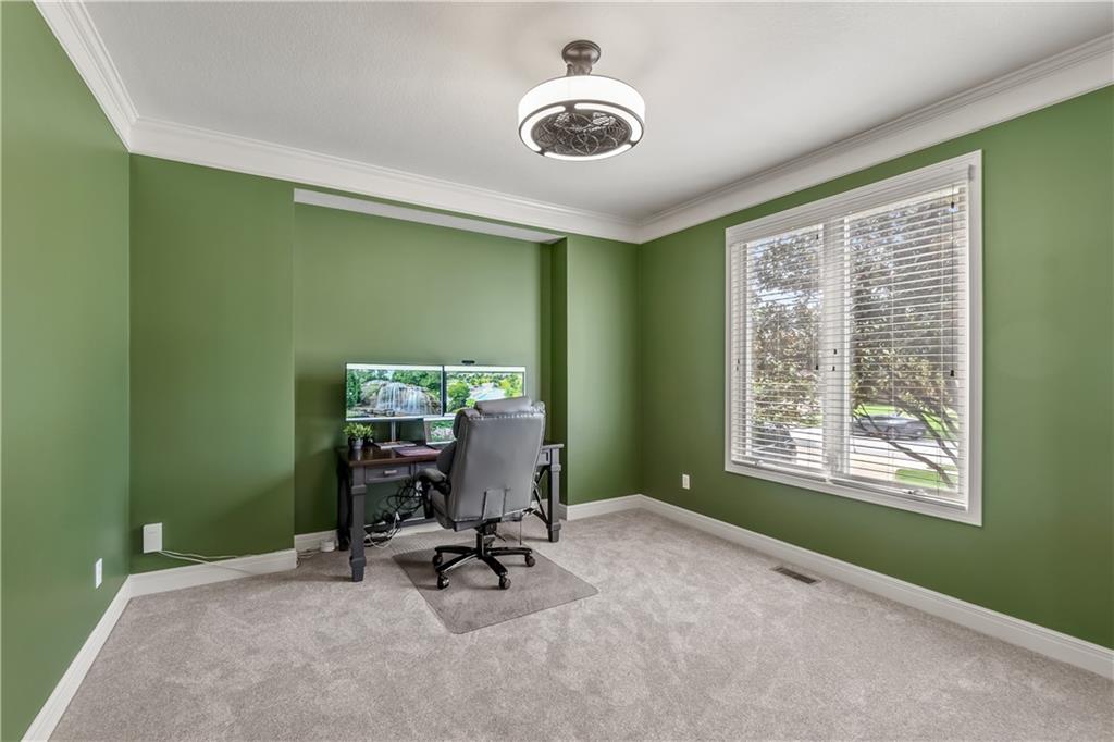 Welcome to this stunning 1.5-story home on an incredible lot with breathtaking views of green space and a scenic creek valley. Filled with natural light from dramatic picture windows, this beautifully updated home offers an open main level perfect for everyday living and entertaining. The formal dining room offers flexibility for use as a home office or formal sitting room. The main-floor primary suite is a true retreat, featuring serene backyard views, a spacious ensuite bath, and an oversized walk-in closet connected to the laundry room. Upstairs features three generously sized bedrooms, two additional bathrooms, and a large loft space. The recently finished walkout lower level is exceptional, offering an incredible rec room, cozy fireplace, custom wet bar with two beverage fridges and a dishwasher, an upgraded full bath with rainfall shower, an additional bedroom, and ample unfinished storage. Thoughtful extras include high-end theater speakers, dimmable lighting w/Nightlight feature, and smart home upgrades throughout. Step outside to your private backyard oasis with a level fenced yard overlooking peaceful green space. The large deck and expansive patio are perfect for relaxing or entertaining. Major updates include a high-efficiency HVAC (2021), upgraded 50-year roof with oversized gutters and gutter guards (2024), new water heater (2025), new carpet (2026), full interior repaint, updated faucets, engineered retaining wall, new fence, Wi-Fi sprinkler system, Ecobee thermostat, air purification system, and more—making this home truly move-in ready. Forest View offers one of the area’s most photographed waterfalls, a huge zero-entry pool, a water park, a sport court, sand volleyball, trails, a playground, picnic and grilling areas and easy access to Cedar Niles Park with miles of biking, hiking, and walking trails. This home truly has it all!
