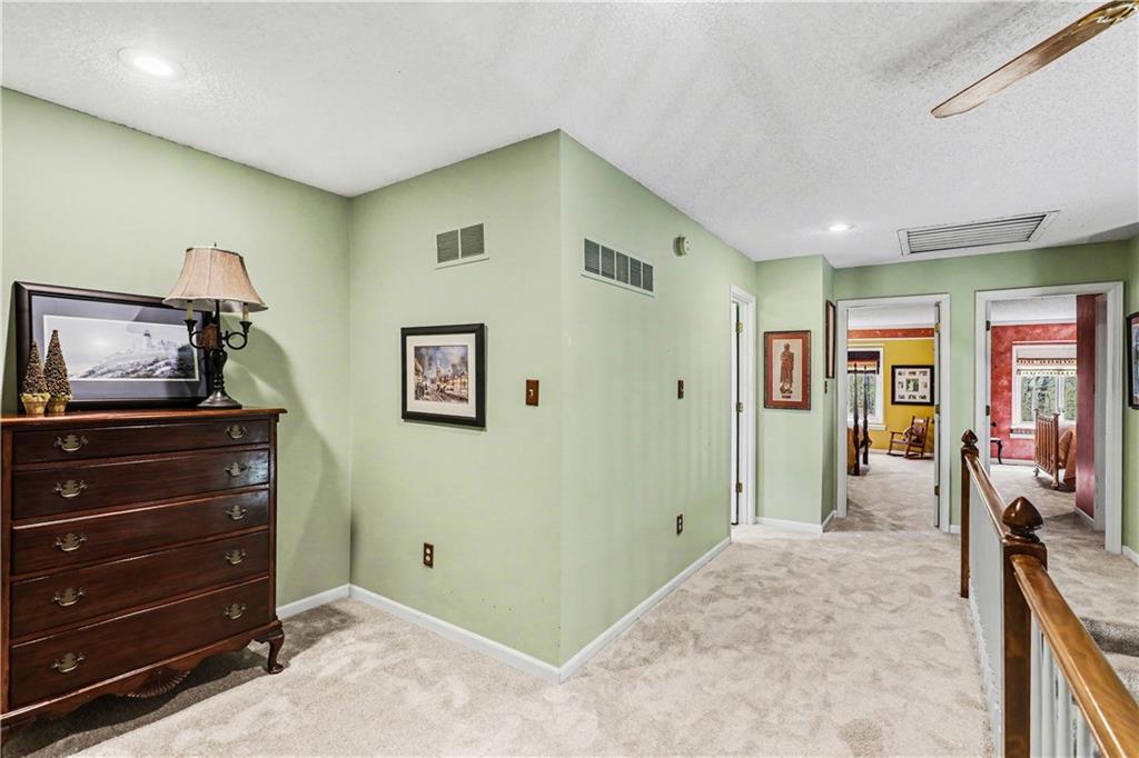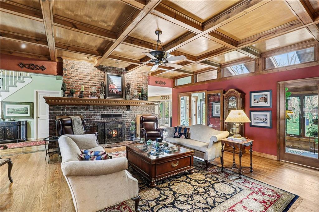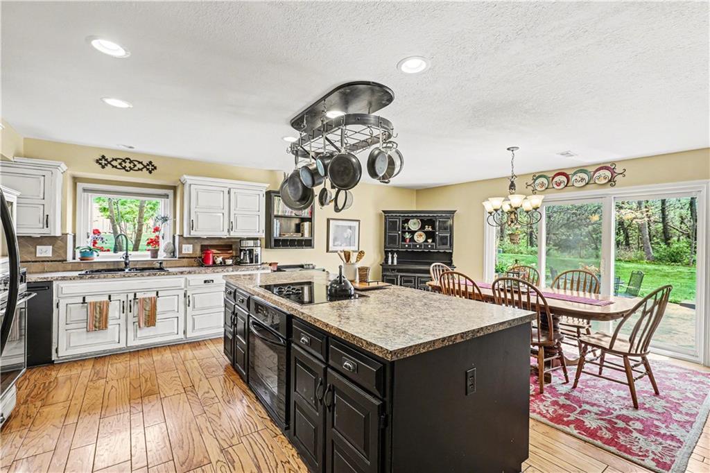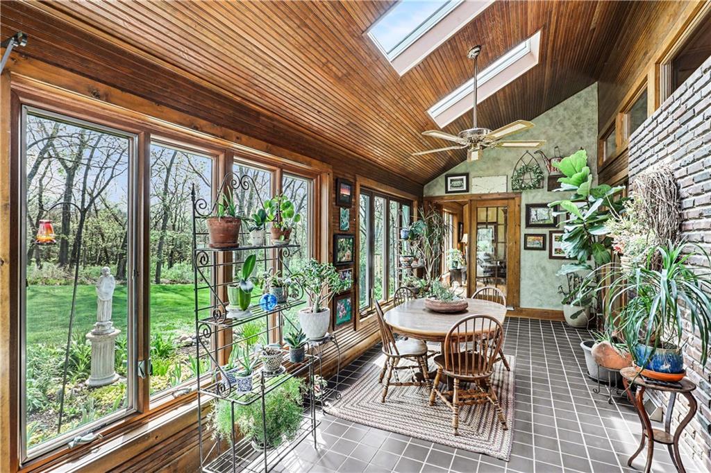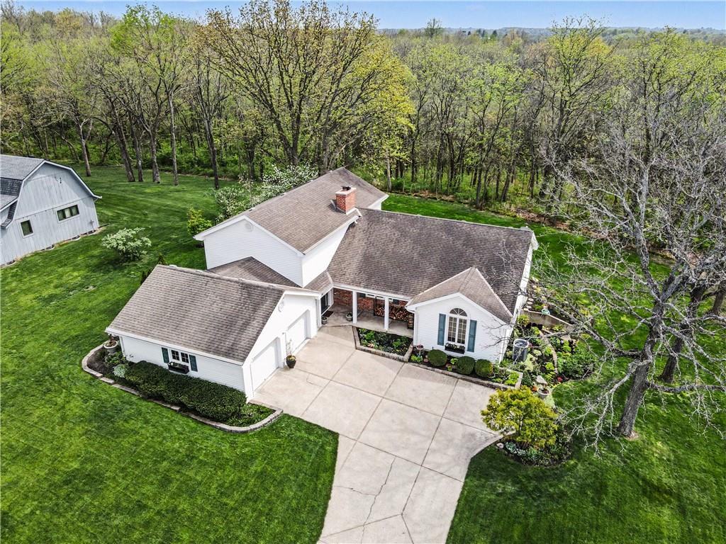 Welcome to this stunning 1.5-story home, perfectly positioned on a beautifully landscaped, tree-lined lot. Offering just over 3,000 square feet with an oversized two-car garage, this one-owner residence showcases thoughtful design, timeless character, and pride of ownership throughout. From the moment you step inside, you’re greeted by soaring ceilings and a sense of warmth and individuality. The expansive great room is truly the heart of the home, featuring striking beamed ceilings and a floor-to-ceiling brick wood-burning fireplace. Double doors lead to a sunroom that overlooks the private backyard—an ideal spot to relax and take in the peaceful surroundings. The open-concept kitchen is both functional and stylish, complete with an oversized island, double ovens, generous dining area, and sliding glass doors that open to a patio surrounded by mature trees and vibrant landscaping—perfect for entertaining or quiet evenings outdoors. Just off the kitchen, you’ll find a well-appointed mudroom, laundry room with sink, additional refrigerator, and a spacious walk-in pantry. The main-level primary suite offers comfort and convenience, featuring a walk-in closet, en-suite bath, and direct access to a versatile office or sitting room. Upstairs, a charming loft overlooks the living space below and leads to two spacious bedrooms, each with walk-in closets, and a full bath. The massive unfinished walk-out basement provides endless possibilities for future expansion, storage, or customization to fit your lifestyle. Lovingly maintained and thoughtfully designed, this exceptional home is truly one-of-a-kind. Don’t miss your opportunity to make it yours—homes like this rarely come along.