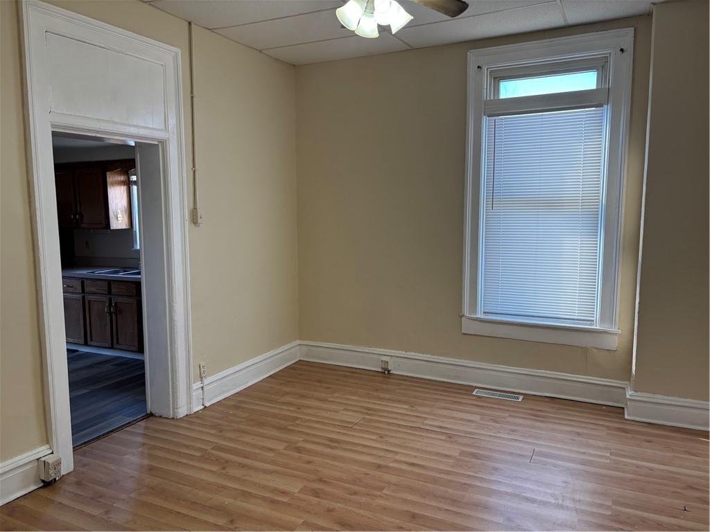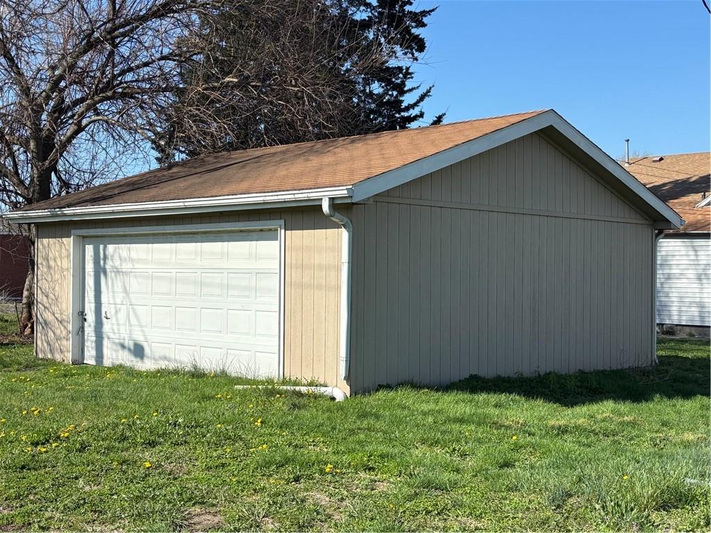 3-bedroom, 1 bath home with 2 car detached garage that features large living room and dining room, main floor laundry, a front porch, and a deck in back off the kitchen. Most of the interior has been freshly painted, and new vinyl floors installed in the kitchen and bathroom. Property has been used as a rental in the past and recently was on housing for $1,100/month but can also be used as a primary residence that has large rooms.