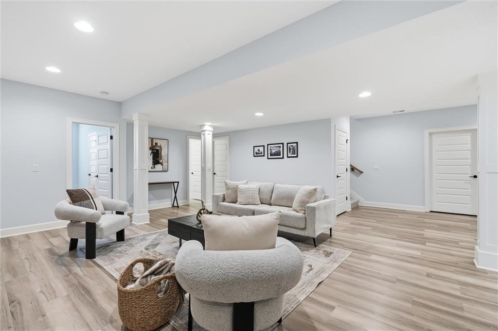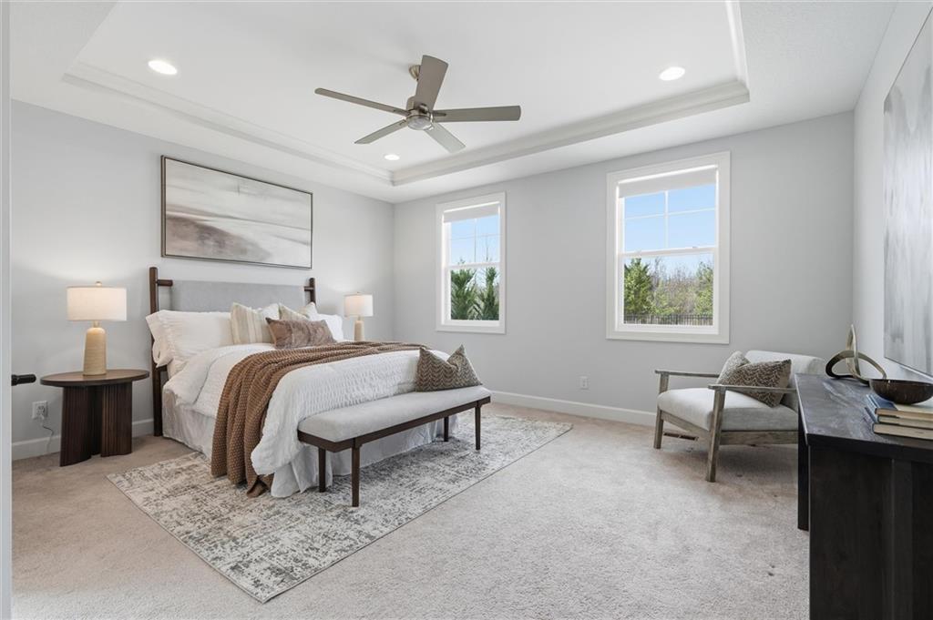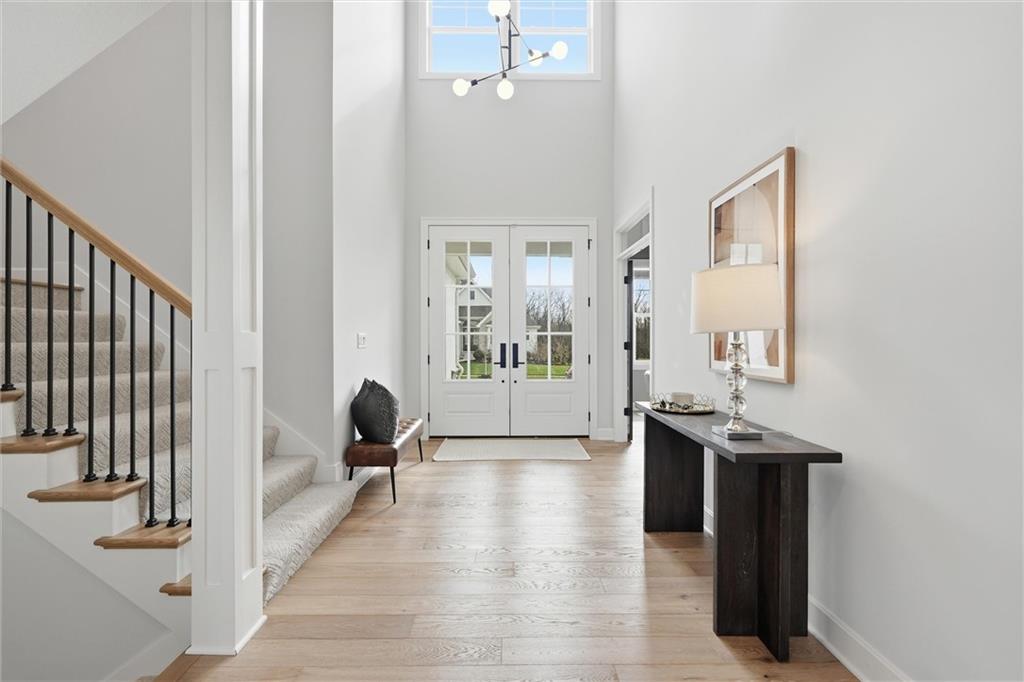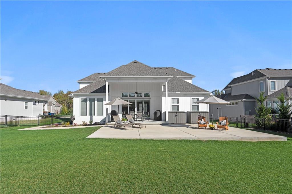 Meticulously maintained, like-new home that outshines new construction, offering a thoughtful open floor plan and seamless indoor-outdoor flow on a premium lot with a large private backyard and wooded views. The main level features a grand two-story entry, spacious living room, private office, and a gourmet kitchen with floor-to-ceiling white oak cabinetry and upgraded gas range. The main-level primary suite offers a spacious layout with convenient access to the laundry room. The upper level includes three generously sized bedrooms, each with walk-in closets and en suite baths. The finished lower level features a guest bedroom, full bath, wet bar, flex room/home gym, and ample storage. Enjoy abundant natural light throughout, along with beautiful sunset views from the backyard overlooking wooded green space. Move-in ready with convenient access to major commuting routes and located within the highly rated Blue Valley School District. Motivated sellers—come see this beautiful home and make an offer!