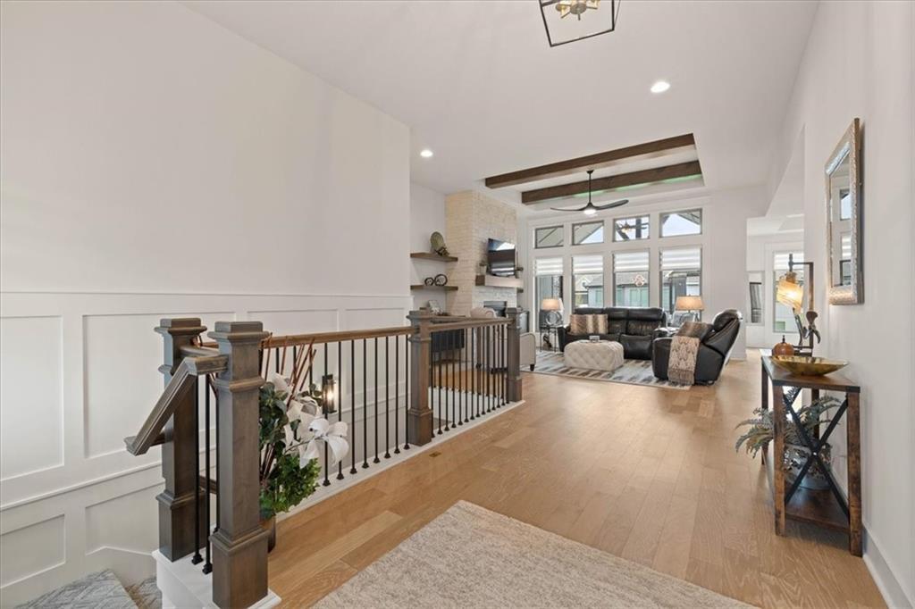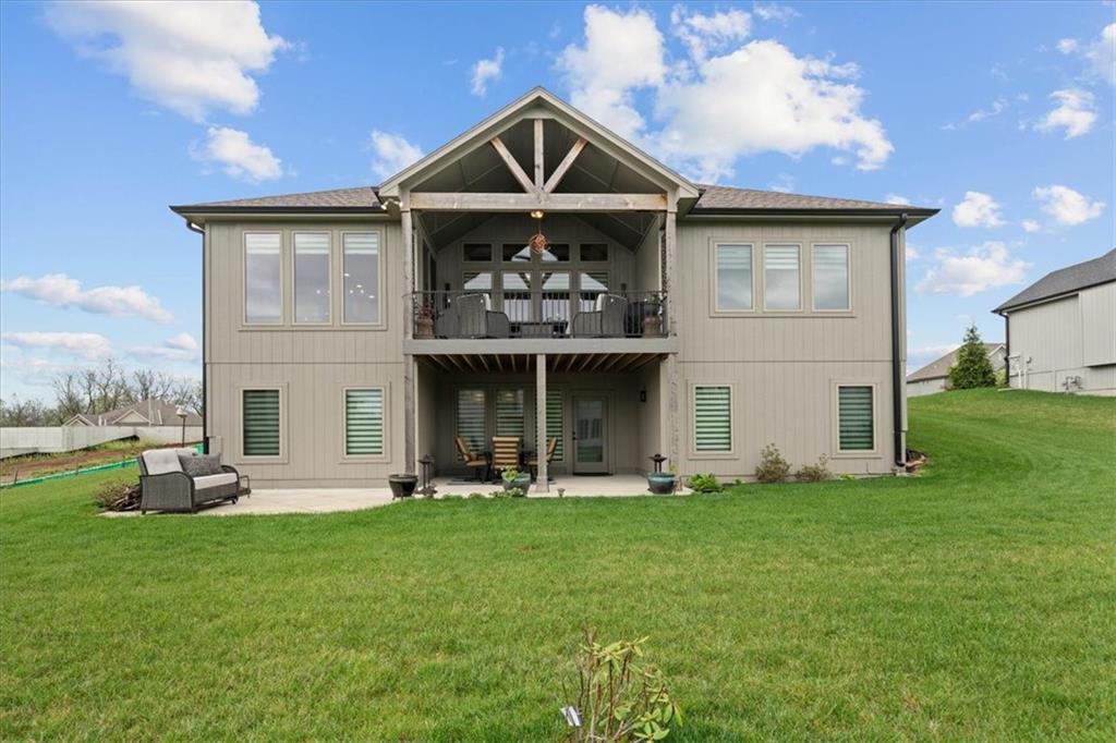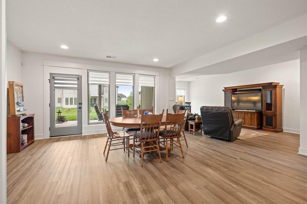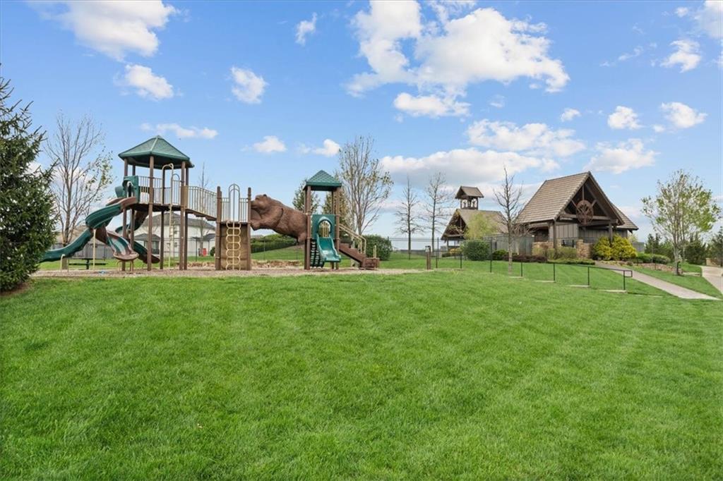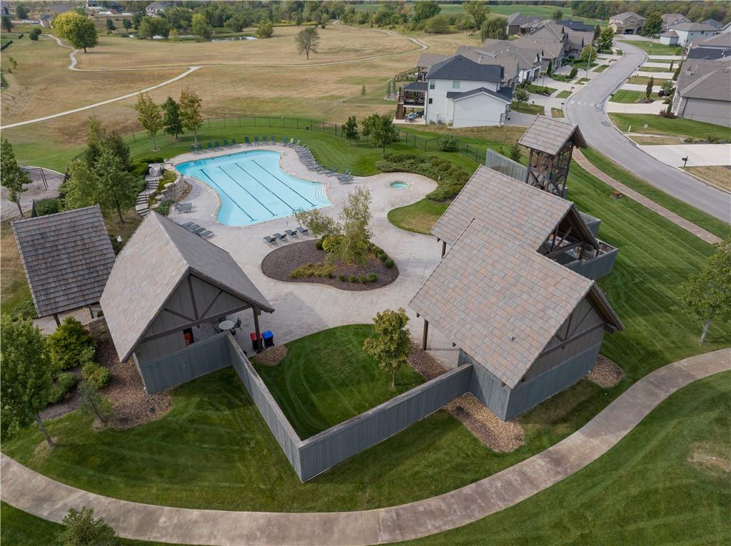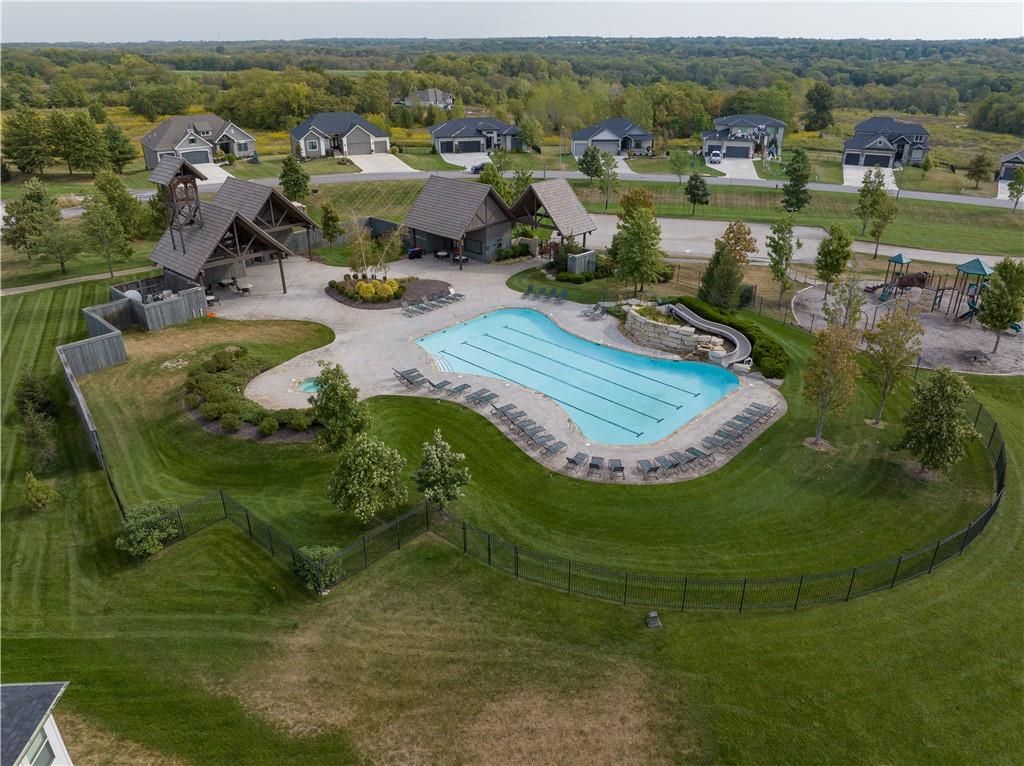 Welcome to this stunning JFE custom-built home loaded with high-end finishes, thoughtful upgrades, and exceptional detail throughout in an excellent location in the award winning Lee's Summit School District. A charming front porch and grand double-door entry welcome you into a light-filled, open main level designed for both everyday living and entertaining. The spectacular kitchen is a true showpiece featuring abundant custom cabinetry, built-in trash storage, a massive quartz island, gas cooktop, and an oversized walk-in pantry. The kitchen flows seamlessly into the dining area and spacious living room highlighted by a dramatic floor-to-ceiling stone fireplace, flanked by built-in cabinetry and floating shelves. The luxurious primary suite is a true retreat with a spa-like ensuite bath offering a walk-in shower with dual shower heads, including a rain shower, and an incredible walk-in closet that connects directly to the laundry room. Every bedroom includes its own private bath, offering comfort and privacy for family and guests alike. The finished walkout lower level provides outstanding additional living space with a large rec room, stylish wet bar, two spacious bedrooms, two full baths, and still plenty of unfinished storage. Some of the many exceptional details include beautiful wood beams, inset tray ceilings with shiplap accents, Graber window treatments, extensive landscaping upgrades, an epoxy-coated garage floor and basement storage area, a 24-foot deep garage, an extended patio, and a covered composite deck perfect for relaxing or entertaining. Located in a vibrant amenity-rich community with miles of walking trails, a neighborhood pool, sand volleyball, a park and play area, several ponds (including one with a fishing dock), and easy access to James A. Reed Wildlife Area. This amazing home offers an exceptional lifestyle in one of the area’s most convenient and sought-after settings.