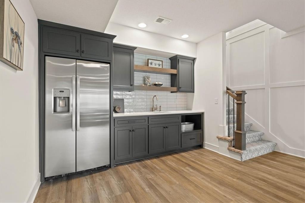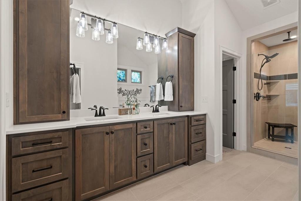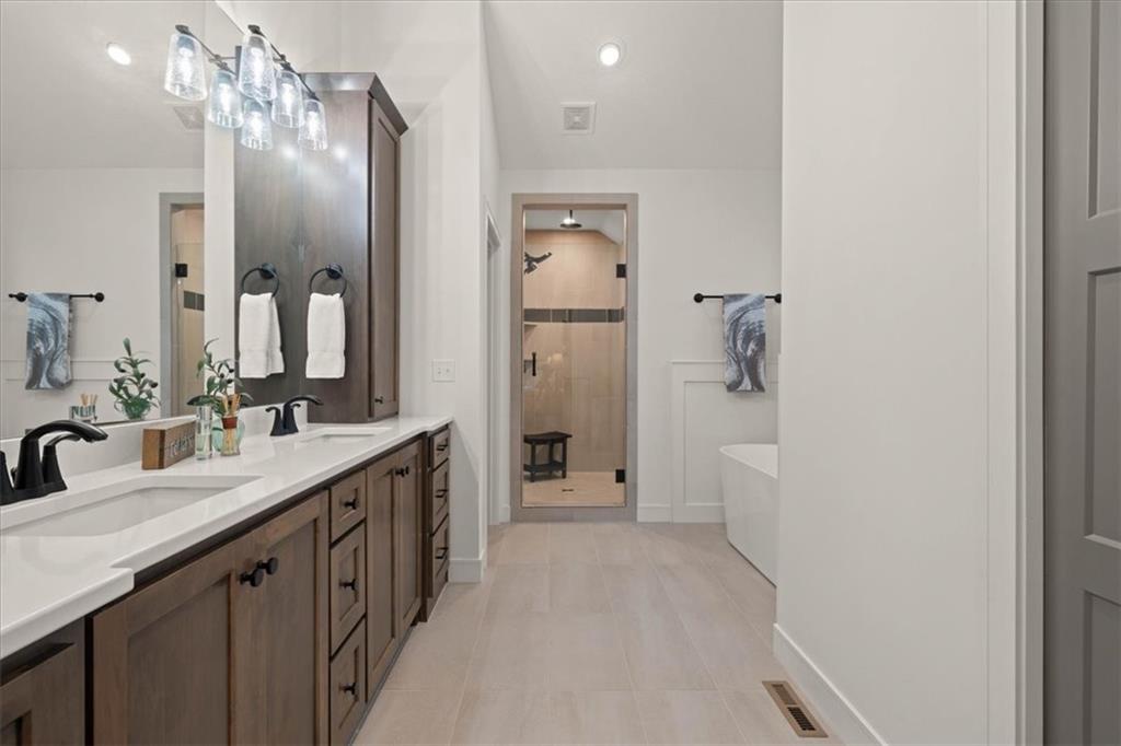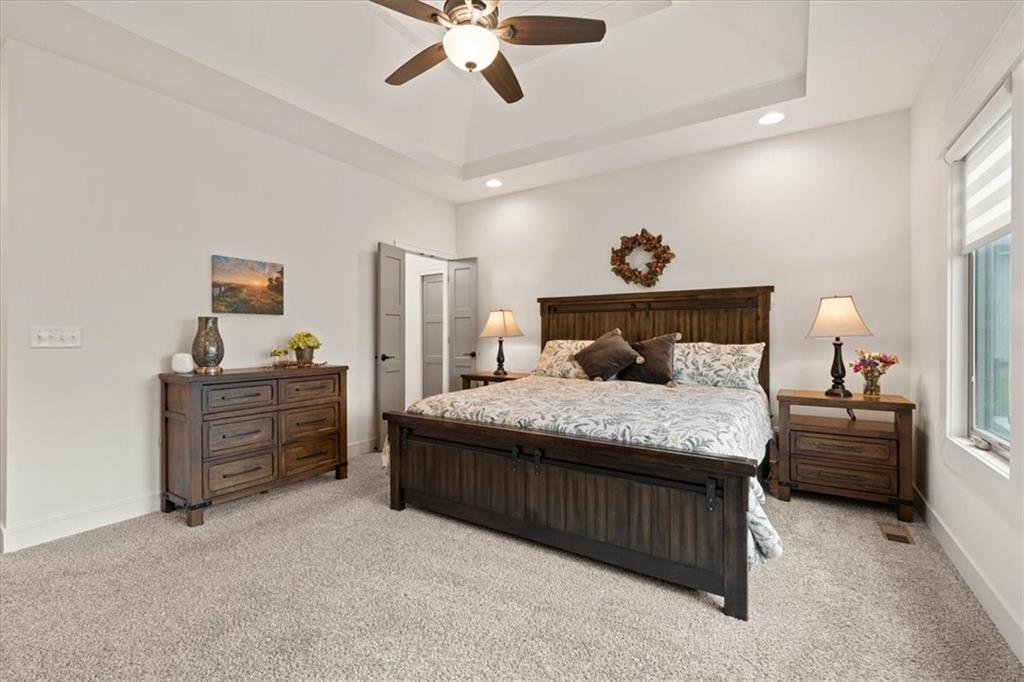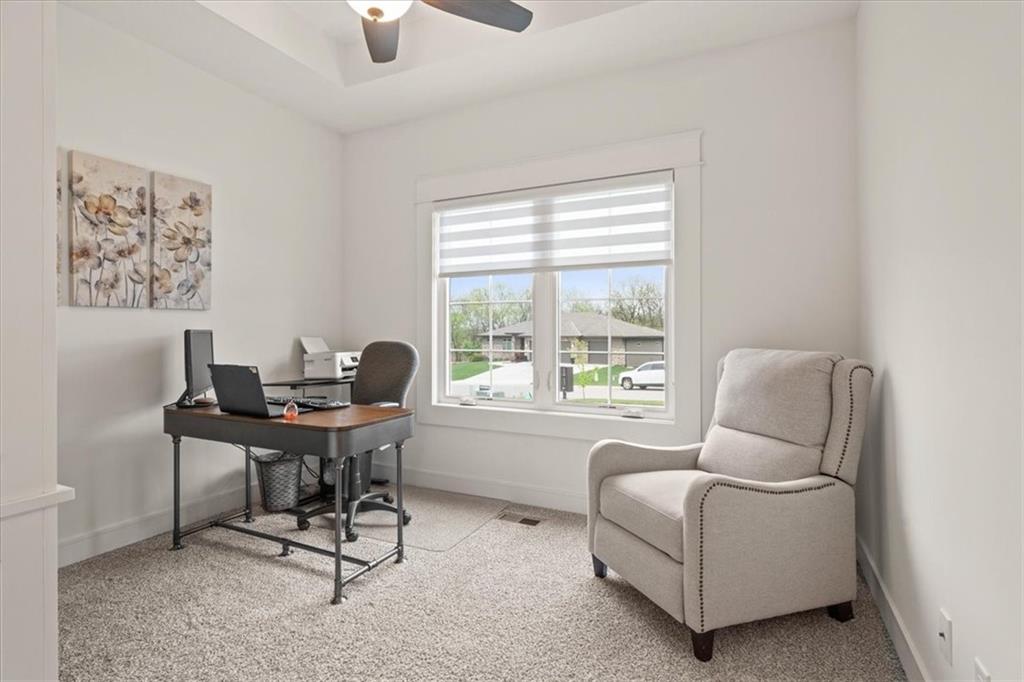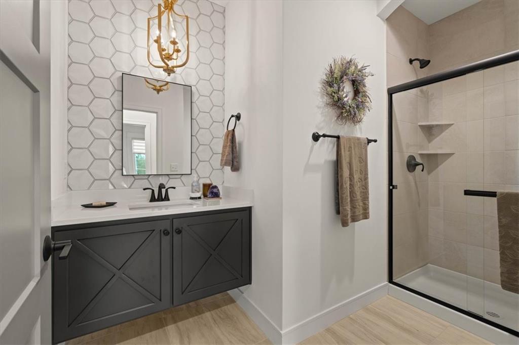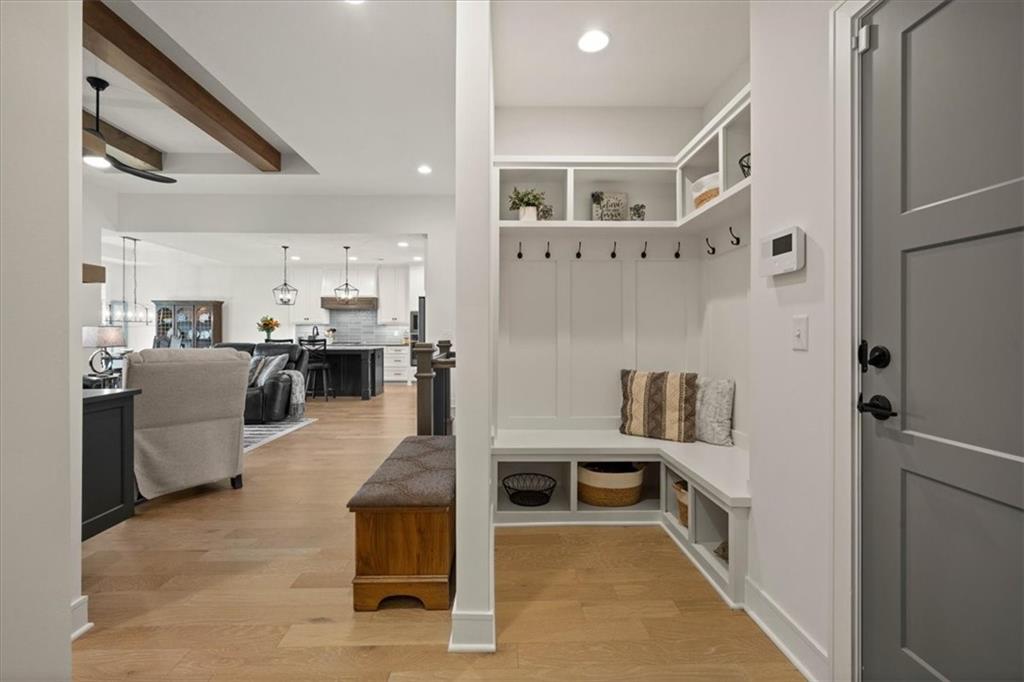 Welcome to this stunning JFE custom-built home loaded with high-end finishes, thoughtful upgrades, and exceptional detail throughout in an excellent location in the award winning Lee's Summit School District. A charming front porch and grand double-door entry welcome you into a light-filled, open main level designed for both everyday living and entertaining. The spectacular kitchen is a true showpiece featuring abundant custom cabinetry, built-in trash storage, a massive quartz island, gas cooktop, and an oversized walk-in pantry. The kitchen flows seamlessly into the dining area and spacious living room highlighted by a dramatic floor-to-ceiling stone fireplace, flanked by built-in cabinetry and floating shelves. The luxurious primary suite is a true retreat with a spa-like ensuite bath offering a walk-in shower with dual shower heads, including a rain shower, and an incredible walk-in closet that connects directly to the laundry room. Every bedroom includes its own private bath, offering comfort and privacy for family and guests alike. The finished walkout lower level provides outstanding additional living space with a large rec room, stylish wet bar, two spacious bedrooms, two full baths, and still plenty of unfinished storage. Some of the many exceptional details include beautiful wood beams, inset tray ceilings with shiplap accents, Graber window treatments, extensive landscaping upgrades, an epoxy-coated garage floor and basement storage area, a 24-foot deep garage, an extended patio, and a covered composite deck perfect for relaxing or entertaining. Located in a vibrant amenity-rich community with miles of walking trails, a neighborhood pool, sand volleyball, a park and play area, several ponds (including one with a fishing dock), and easy access to James A. Reed Wildlife Area. This amazing home offers an exceptional lifestyle in one of the area’s most convenient and sought-after settings.