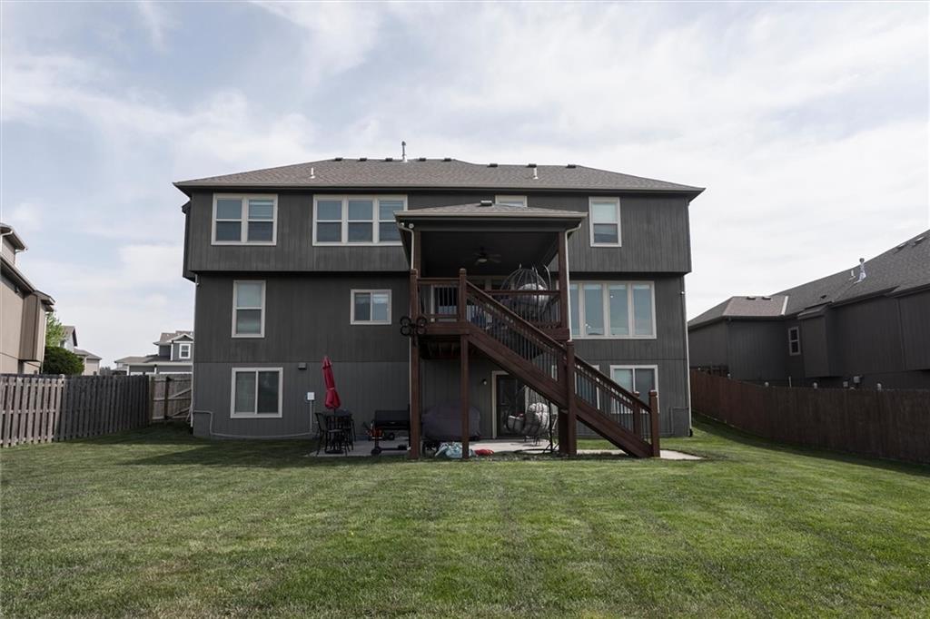Welcome to The Reserve at Stoney Creek, where space, design, and thoughtful upgrades come together in one of the communities most sought after floor plans. Situated in the Lee's Summit school district and built in 2016, this meticulously maintained, this 5 bedroom, 4 bath two story offers the highly desirable Bristol Ridge II by Summit Custom Homes - known for its functionality, flow, and elevated living experience. Step inside and you'll immediately appreciate the rare main level bedroom, perfect for guests, multi-generational living, or a private office setup, something not often found in this style of home. Upstairs, four generously sized bedrooms provide comfort and separation, highlighted by an expansive primary suite that feels like its own retreat, complete with sitting area, fireplace, dual vanities, and his and her walk in closets. The heart of the home is a true gourmet kitchen, featuring stainless steel appliances, a massive island, abundant cabinetry, and a large walk in pantry - designed for both everyday living and effortless entertaining. Just off the kitchen, step out onto the newly stained deck, ideal for hosting or simply unwinding in your private outdoor space. An additional feature includes a high efficiency, 16 SEER /96.5 HVAC system. The large basement is ready for your touches. Beyond the home itself, The Reserve at Stoney Creek offers a lifestyle complete with two community pools, two playgrounds, and a sand volleyball court, plus a nearby city park and miles of walking trails. All of this with quick access to shopping, dining, and major highways. Some homes check boxes. This one raised the standard.