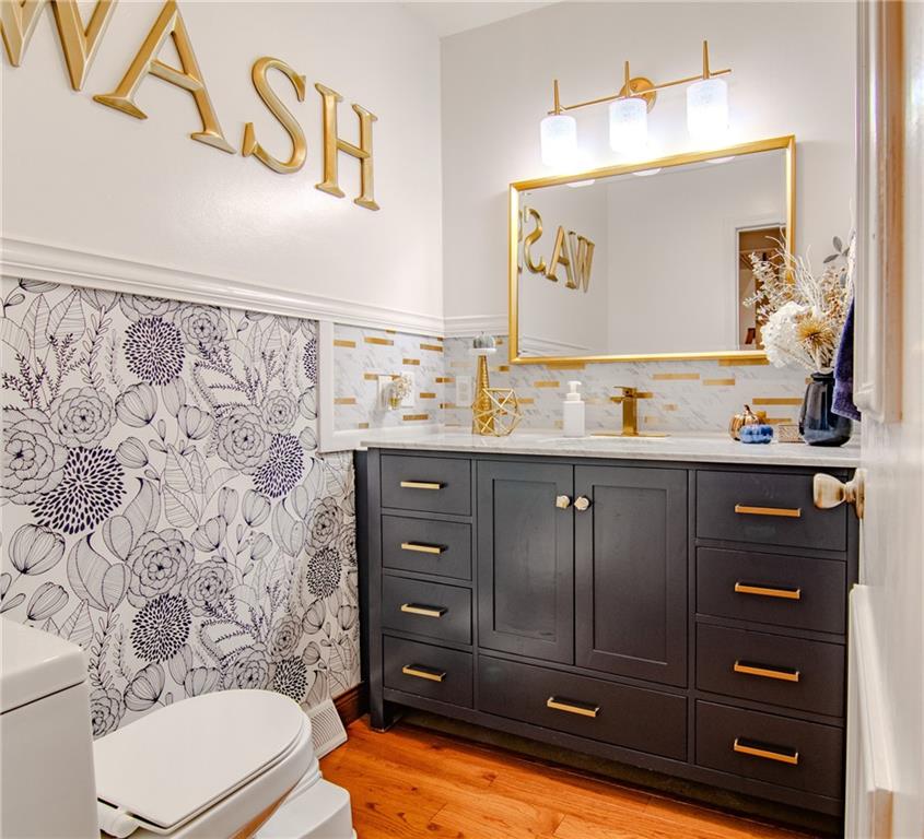 Step into this grand foyer and you will be impressed by the open living area this home provides. There are large living areas off each side of the foyer and a beautiful staircase leading upstairs. There are two dining areas (one off of each side of the kitchen). There is an additional family room on the main level as well. This home does not have any carpet. Four bedrooms, a huge bathroom, and a laundry area are upstairs. The primary bedroom is large with an incredible walk-in closet. Additional living space has been started in the basement. There is an oversized two car garage attached to the home and an additional two car detached garage. Solar panels are a new addition to this home, as well as a privacy fenced backyard and whole home water filtration system. This home sits on a small hill on the corner lot of a popular cul-de-sac and offers plenty of off-street parking for those days you feel like entertaining.