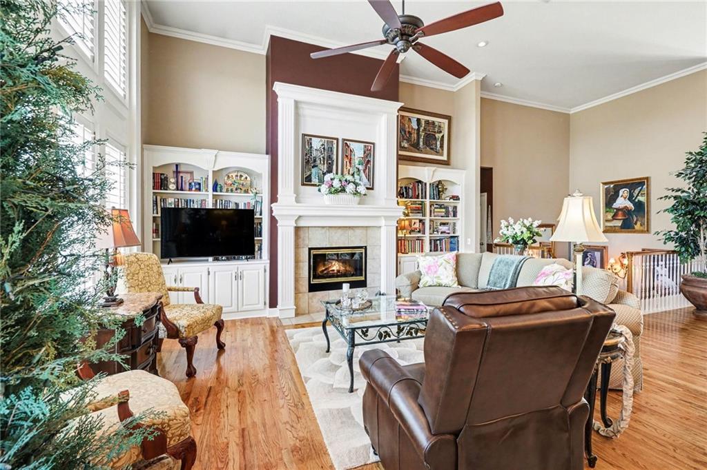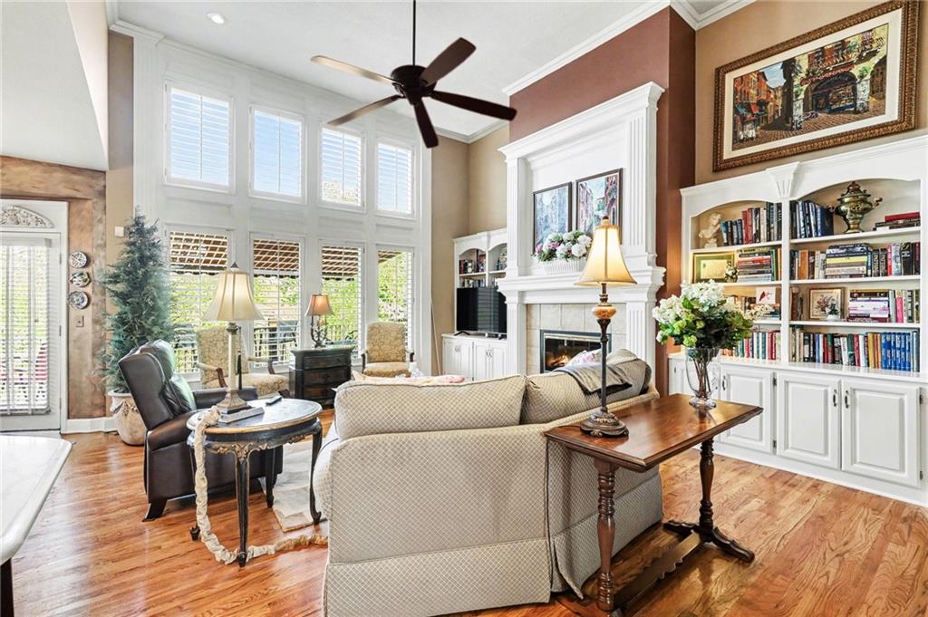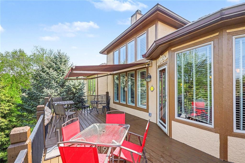 Stunning Reverse 1.5 Story stand-alone villa in sought-after Falcon Ridge Villas! Inviting entry with 14 ft ceilings spanning into the open great room with plantation shutters, built-in bookcases, and a cozy fireplace with vent-free gas logs that easily light with the push of a button. Beautiful hardwood floors throughout the main level. Updated kitchen with a large center island, newer stainless steel appliances, high-end Bosch gas range, granite and quartz countertops, roll-out kitchen cabinets, under-cabinet lighting, and a spacious breakfast room. Nice formal dining room for entertaining. Main floor primary suite with shutters, a walk-in closet, and a gorgeous remodeled bathroom with upgraded polished nickel hardware, a freestanding soaker tub, and a walk-in shower. 2nd bedroom or office on the first floor, plus a remodeled full bath. The finished walkout lower level has a family room with a huge bar for entertaining, a bedroom, a full bath, and a large storage area. Nice deck with new retractable awning and covered patio, newer HVAC, three car garage, and a newer stone-coated steel panel roof. Great neighborhood amenities, including lawn maintenance, snow removal, and trash pickup. Homeowners can optionally join the pool and clubhouse for an additional $325 per year.