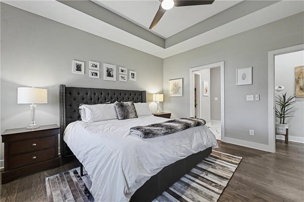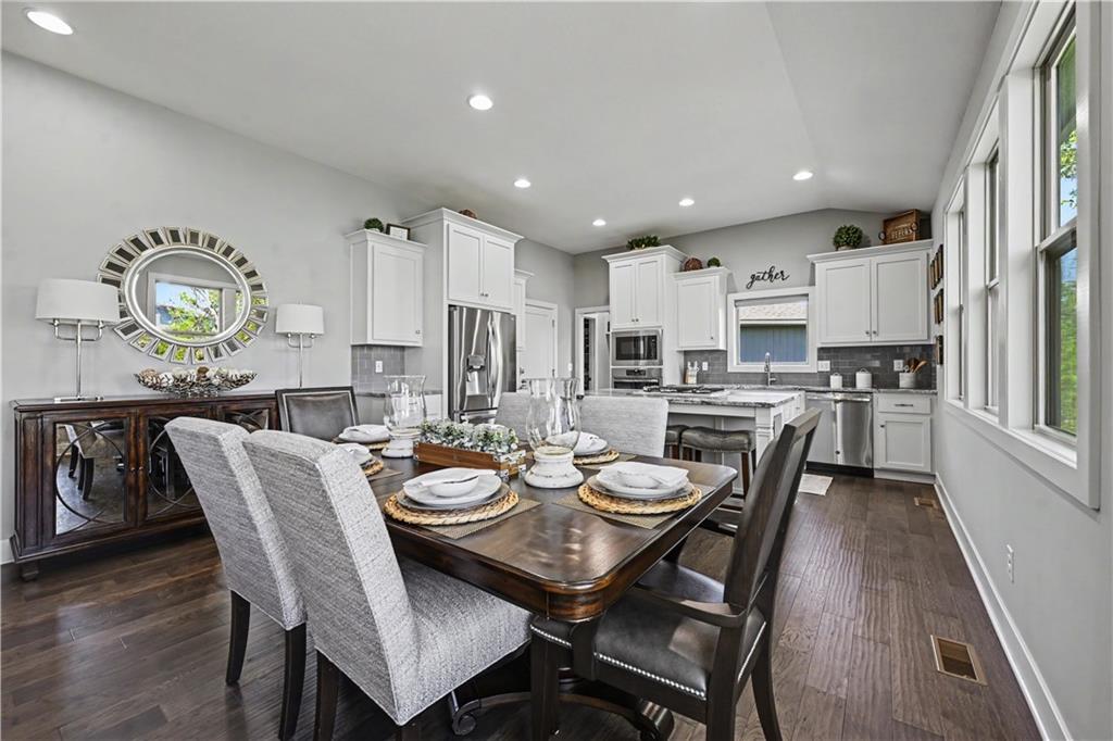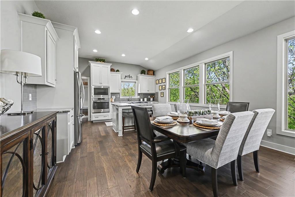 GORGEOUS reverse 1.5 story home on an amazing Cul De Sac in the heavily sought after Arbor Woods in Olathe with wonderful curb appeal! Beautiful gourmet kitchen with huge eat in granite island, with walk in pantry, hardwood floors, and stainless steel appliances. Lovely deck off conveniently located off kitchen - overlooking the beautiful treed view- great for grilling and entertaining! Spacious Master BR with ensuite with vaulted ceiling, carpet, shower, double vanities with granite tops, walk through closet, laundry and another bedroom/office all on main floor. Lower level has HUGE family room with wet bar, with third large bedroom with full bath, and large storage.