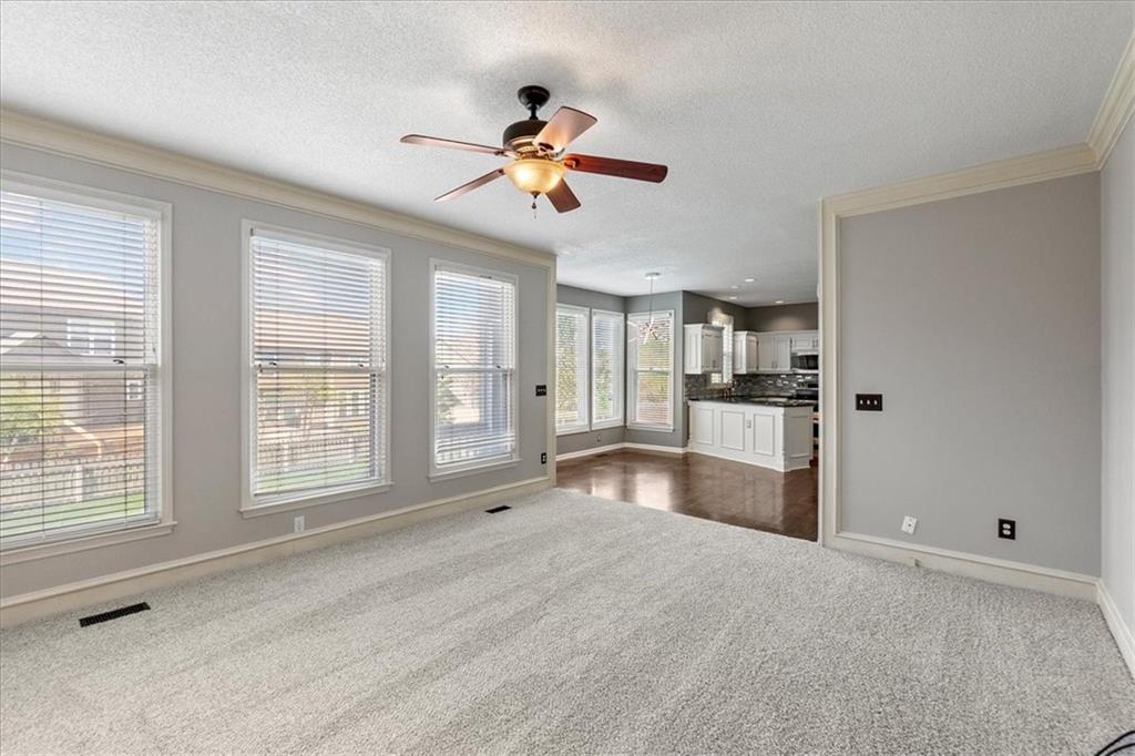Move-in ready with fresh interior paint and brand-new carpet, this well-positioned two-story offers an exceptional opportunity in a prime Blue Valley location. Just moments from the Lakewood Elementary and Middle School campus, Stanley Station shops, Corbin Park amenities, and Highway 69, this home delivers a level of everyday convenience that is hard to replicate. Inside, you'll discover a functional and inviting floorplan where the formal living room and entry flow seamlessly into a generous dining area, creating flexible space for both everyday use and entertaining. The eat-in kitchen features GE Profile appliances, granite countertops, and direct access to the backyard, making indoor-outdoor living easy and functional. Just off the kitchen, the family room provides a comfortable gathering space filled with natural light and a cozy fireplace. Upstairs, all bedrooms and a laundry room are conveniently located on the same level. The expansive primary suite includes tray ceilings and an en-suite bath with double vanities, a whirlpool tub, and an oversized walk-in closet. Three additional bedrooms share a full bath with dual vanities, offering flexibility for family, guests, or home office needs. Outside, the flat, fenced backyard with patio and well-maintained landscaping creates a usable outdoor setting for relaxing or entertaining. With its practical layout, fresh updates, and highly desirable Blue Valley location, this home presents a strong opportunity in one of southern Johnson County’s most sought-after communities.