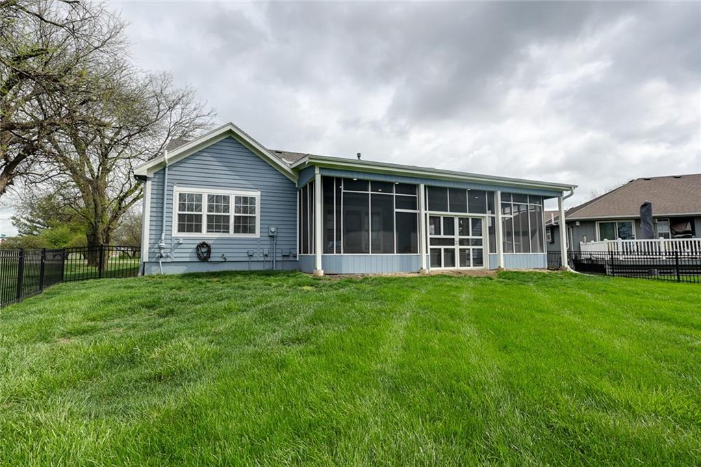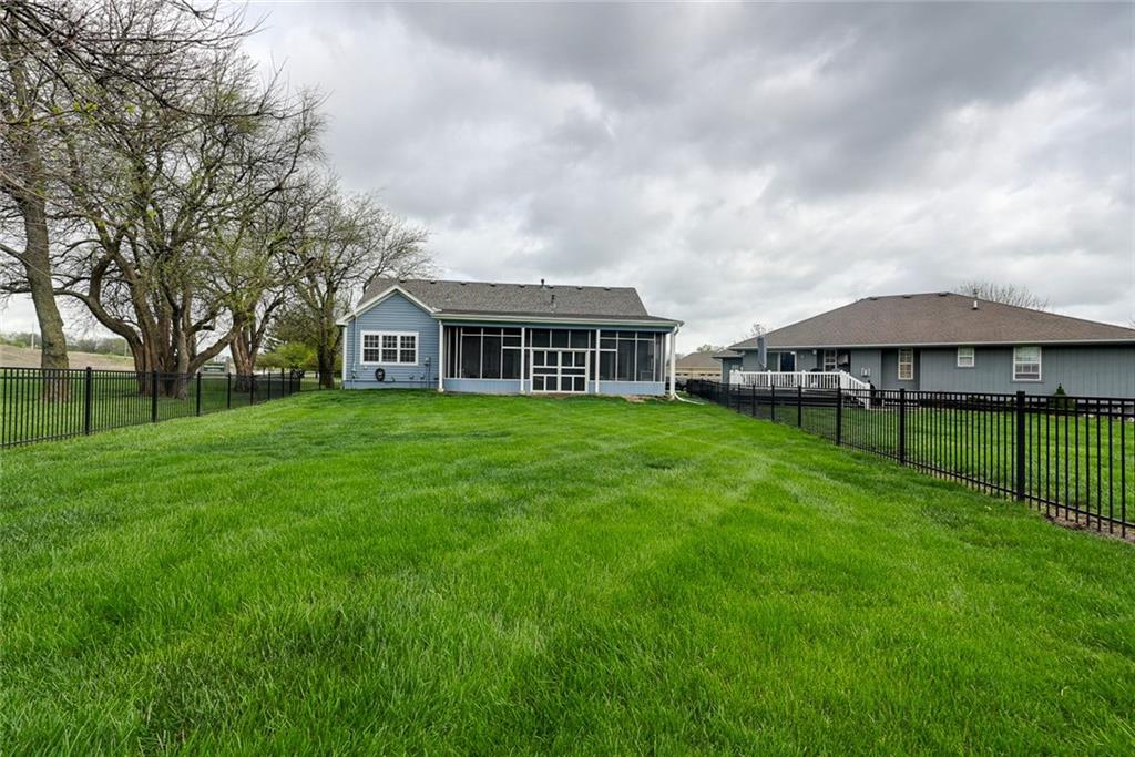 Come check out this beautiful maintained True Ranch that sits on the 1st corner lot in the Subdivision offering an open and inviting floor plan perfect for everyday living and entertaining. It has 3 bedrooms and 3 FULL bathrooms w/ a LARGE unfinished basement. All 3 bedrooms on main level, including a secondary ensuite. The primary suit has a closet the length of the room with built in shelves. Laundry room is right outside primary bedroom making this home, main level living! The open-concept kitchen features abundant counter space, appliances tht stay, and a seamless flow into the dining area—perfect for cooking, entertaining, or simply enjoying everyday life. Step out to your oversized sunroom—perfect for grilling, relaxing, or soaking in a quiet evening view. The large unfinished basement is ideal for creating your perfect space or just for storage. Thoughtful updates throughout the home include the new Sunroom, Fence, Roof, Carpet and hot water heater, Fresh paint inside and outside. Lots of space to enjoy, come check it out. This home is move-in ready and waiting for you! Located in a desirable Raymore neighborhood, Enjoy easy access to walking trails, highway access, shopping and Restaurants. Open houses will be available.
