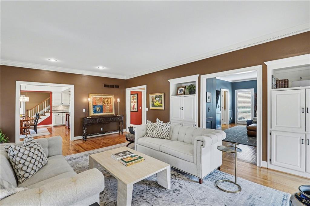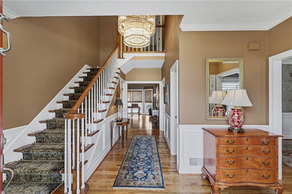 Classic center-hall Colonial in coveted Nottingham Forest South, showcasing exceptional craftsmanship, thoughtful updates, and true pride of ownership at every turn. Hardwood floors flow throughout the main level, where floor-to-ceiling windows flood every room with light. The the den showcases elegant wainscoting, while the living room features a custom fireplace, built-ins, and trim work executed by the same artisan team trusted by builder Kirk Cornelius, a distinction that speaks for itself. Two half-baths on the main level and dual-entry stairs to the bedroom level add both convenience and architectural charm. A kitchen wine refrigerator completes the main floor package. Upstairs, the Primary Suite is a true retreat, featuring a fireplace, floor-to-ceiling windows, California Closets, and a spa-worthy bath with heated floors. Three additional bedrooms each offer walk-in closets with custom built-ins; the fourth is oversized with its own built-ins. Three full baths, a cedar closet, and meticulous attention to detail throughout round out the upper level. The basement is an entertainer's dream anchored by a must-see authentic Irish Pub, complete with a cozy fireplace, heated floors, second dishwasher, and a GE Monogram built-in wine refrigerator/ice-maker/freezer, a dedicated Wine Cellar, and high efficiency furnace. Outdoors, a stunning screened porch addition with blackout drapes, fireplace and 4-season TV invites year-round enjoyment, alongside a side deck perfect for al fresco dining. The 3-car garage features epoxy flooring and an EV charging outlet. Custom lighting, custom outlets throughout, central vacuum ? truly too much to list. This one must be seen!
