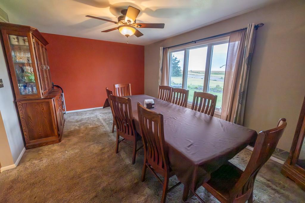 This beautiful 48 +/- acre property brings a lot to the table! Located just west of the golf course outside of Hoxie, KS, it features a sizable 5 bed, 2 bath ranch farmhouse. You can watch the sun rise from your front porch. The main floor includes 2 bedrooms, 1 bathroom, a generous living area and kitchen, large dining room, and a laundry/mudroom off of the oversized 2 car garage. The full finished basement includes 3 bedrooms, a full bathroom, utility closet, a large living space, and lots of storage. The property also includes an additional 864 square foot outbuilding that is half garage and half climate controlled entertaining space, perfect for a mancave. A chicken coop and children's playhouse make up the remaining structures on the property. The property itself is beautiful and loaded with opportunity. A large established windbreak surrounds the north and west sides of the home, offering the much needed protection from the Kansas winds. Additionally, oak and cottonwood trees are strategically placed throughout the farm, giving it a charming, park-like feel. There are several water hydrants sprinkled throughout the 5 acre homesite that would allow several locations for a large garden. The remaining 43 acres are made up of fenced grass that are perfect for your horses, steers, or other livestock options. There’s a good well and heated water tank just off of the corral.