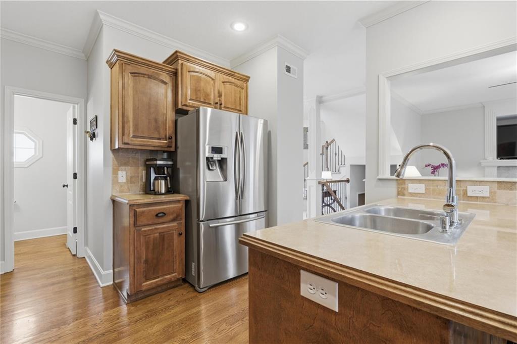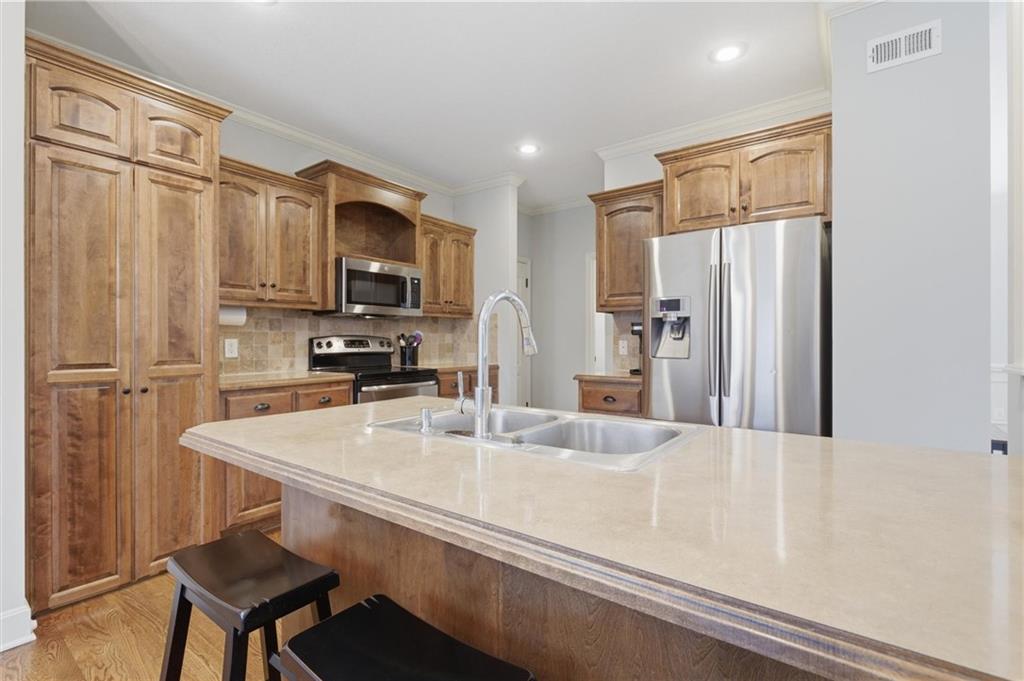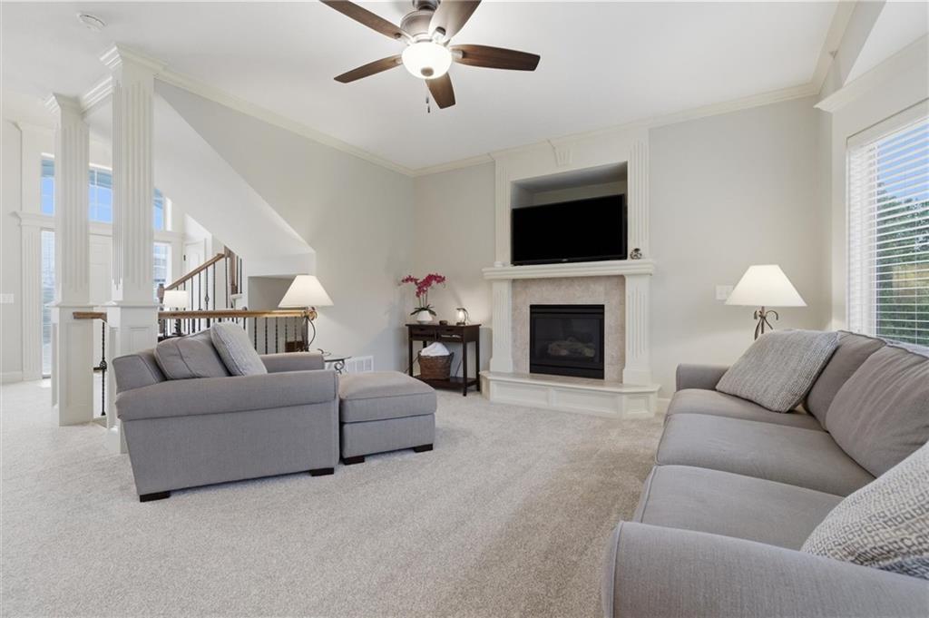 Located in a sought-after, growing neighborhood, this impeccable two-story home offers an open, functional layout designed for everyday living and entertaining. The kitchen, dining, and great room flow seamlessly together, creating a bright, connected main level enhanced by gleaming hardwood floors throughout kitchen The great room is a standout, featuring a gas fireplace with an impressive trim package, oversized windows that flood the space with natural light, and elegant wrought iron railings that add architectural interest. A formal dining room provides the perfect setting for gatherings, while the kitchen is both stylish and practical with a very large hidden pantry offering abundant storage while maintaining a clean, uncluttered look. Updated fixtures and stainless steel appliances complete the space. Just off the breakfast area, step onto the deck overlooking a large, fenced backyard—ideal for morning coffee, relaxing evenings, or entertaining guests. The primary suite offers a private retreat with an elegant tray ceiling. Double doors lead to a well-appointed master bath featuring a jetted tub, separate shower, private water closet, and double vanity with updated lighting and mirrors. Extensive updates provide peace of mind and modern comfort throughout. Major system improvements include a newer furnace, A/C, hot water heater, humidifier, thermostat, and added electronic dampers. Additional upgrades include a sump pump, garage door belt, and keypad. The home has been thoughtfully refreshed inside and out with new interior and exterior paint, updated light fixtures, and five Hunter ceiling fans. Exterior improvements include refreshed rock beds, a replaced hose spigot, garage side door, rear storm door, and tinted rear windows for added comfort and efficiency. Flooring updates include new carpet and LVT in full baths, completing the home’s clean, updated feel. A standout, move-in-ready opportunity you won’t want to miss.