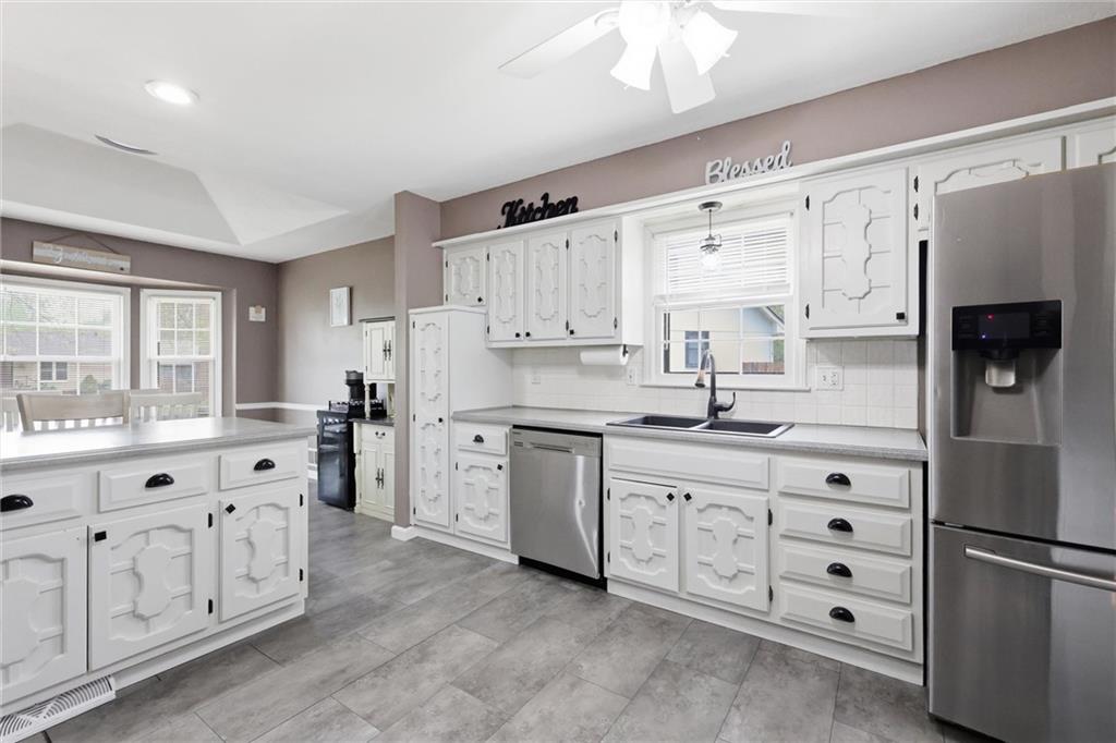 Tucked away on a quiet cul-de-sac in the heart of Blue Springs, this adorable 3-bedroom, 3-bath home is the perfect blend of charm, comfort, and convenience. Recently refreshed with a stylish new paint job, durable LVP flooring, and a brand-new concrete patio, this home is move-in ready and made for easy living. Step inside to find soaring ceilings in the living room that create an open, airy feel—perfect for both relaxing nights in and entertaining guests. The thoughtful layout offers ultimate convenience with laundry located just off the kitchen and on the bedroom level. Out back, you’ll fall in love with the spacious yard—ideal for summer evenings around a firepit, weekend barbecues, or simply enjoying time outdoors playing catch or letting pets roam freely. Located in an award-winning school district and just minutes from everything Blue Springs has to offer—grocery stores, restaurants, parks, and community amenities—this home truly has it all. Seller is also offering a home warranty with an appropriate offer! Charming, updated, and in an unbeatable location—this is one you won’t want to miss!