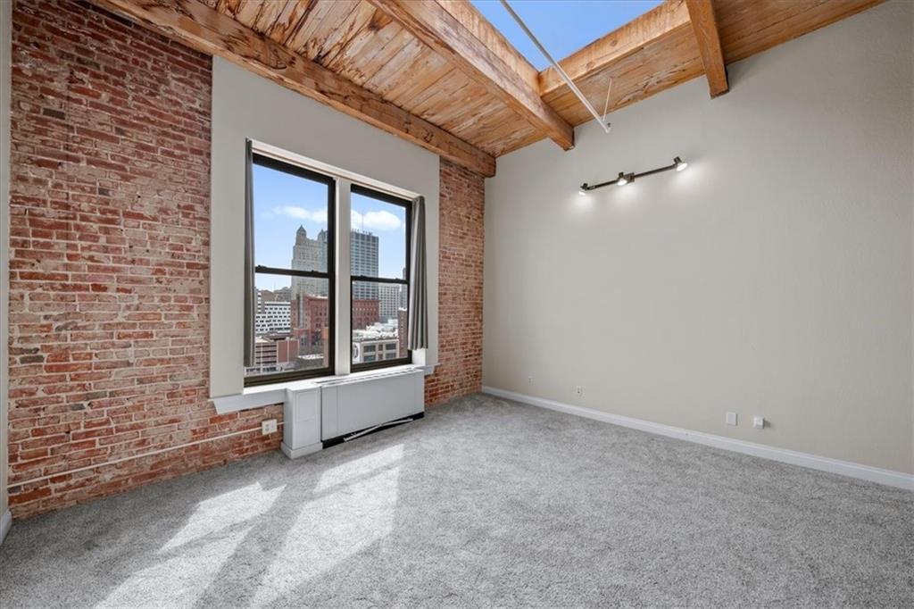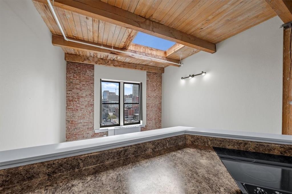 TOP FLOOR STUDIO with incredible skyline views. Welcome to your modern rustic escape above the city at the iconic Soho Lofts. This loft is the ultimate urban lifestyle, blending character, style, and not to mention the location into one unforgettable space. Step inside and you’re immediately greeted by soaring 15-foot ceilings and an abundance of natural light pouring in, creating an open, airy feel that instantly feels like home. The thoughtfully designed layout features a raised kitchen, exposed beams, and beautiful brick walls that bring warmth and texture throughout. Additional highlights include a skylight, all-electric living, and a versatile pull-out queen trundle bed, perfect for maximizing your space. Enjoy access to an impressive lineup of amenities, including a rooftop deck with stunning views, fitness center, sauna, club room, and multiple laundry facilities (one conveniently located on the 4th floor). Several amenities, including the gym, laundry, and club room are currently being renovated. Step outside and experience true convenience of local favorites like The Glam Room and The Phoenix Jazz Club, with easy access to the River Market, Crossroads District, Power & Light District, the highly anticipated Rock Island Bridge, and the KC Streetcar. Covered garage parking is available for lease through Denison Parking with direct building access, starting at $140/month, with additional nearby options available. Storage units may also be available through the HOA. Soho Lofts allow 30+ day rentals, making this not only a stunning place to live but also a strong investment opportunity. This is loft living at its finest, light, bright, full of character, and located in the heart of everything Kansas City has to offer.