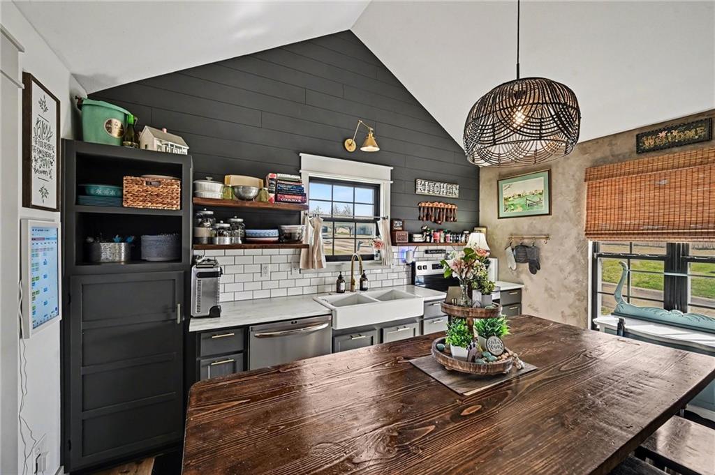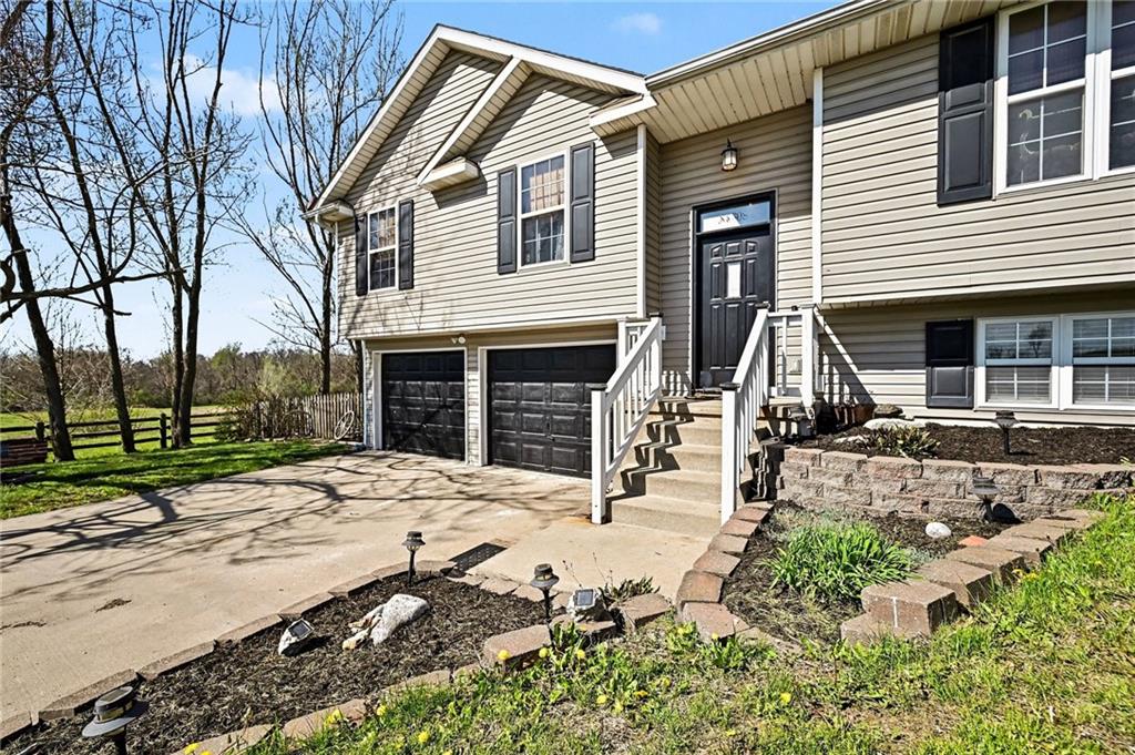 Tucked at the end of the street, this split-entry offers an open main level with living, dining, and kitchen space, vaulted ceilings, great natural light, and a cozy sitting nook. Fireplace with built-in shelving creates a warm focal point in the living area. Kitchen includes a farmhouse sink, stainless steel appliances, and charming accents throughout. Bedrooms and baths are well laid out for everyday living. Finished lower level adds additional living space—ideal for a second living area, rec room, or flex space, plus a tucked-away nook under the stairs currently used as a kids’ play area. Large garage offers extra room for storage, hobbies, or workspace. Situated on a generous lot with room to spread out, including a fire pit area. Roof approximately 10 years old; HVAC serviced in 2025.