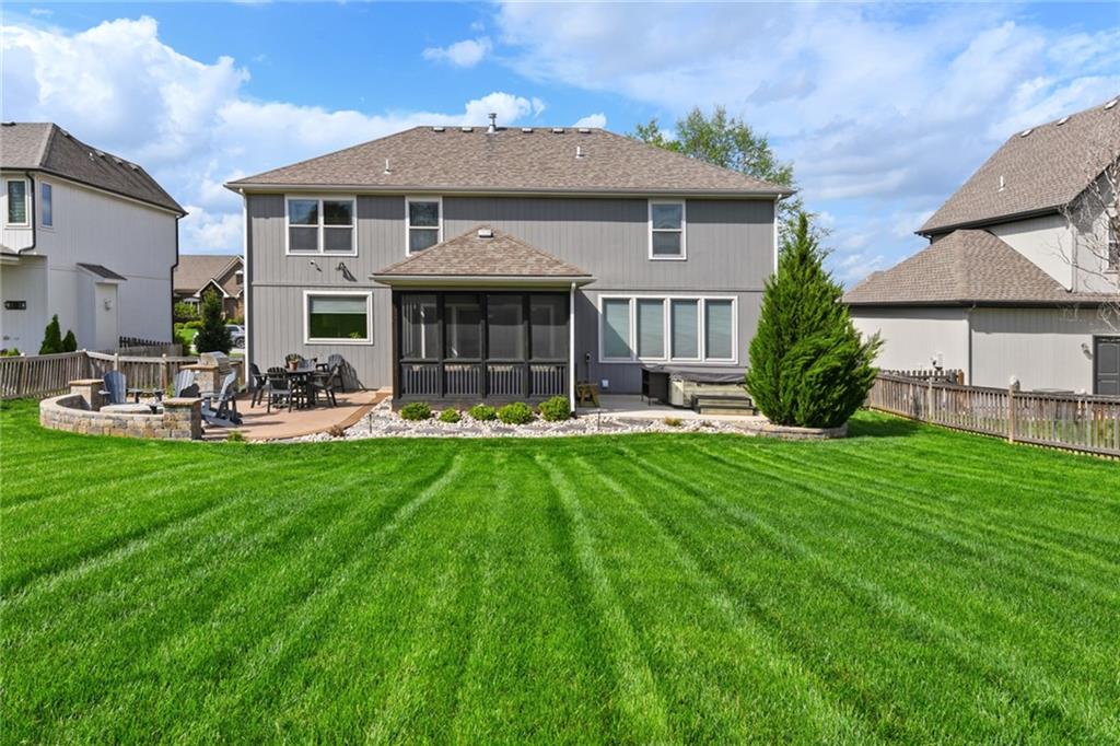 Stunning 5+Bedroom Home in Lee's Summits Premier Lake Community – Raintree! Welcome to your dream home in the highly sought-after Lake community! This beautifully designed 5+bedroom, 4.5-bathroom, 2-story home offers almost 4,000 square feet of luxurious living space and is perfectly situated with views of the pristine Backyard Oasis. Step inside to find rich hardwood floors flowing throughout the main level and an open-concept floorplan filled with natural light. The gourmet kitchen features elegant cabinetry, granite countertops, a spacious island, and a walk-in pantry—ideal for both daily living and entertaining. The expansive lower-level recreation room is the ultimate gathering spot, complete with a stylish wet bar—perfect for game nights or hosting guests. After a long day, relax on the screened-in, covered deck while taking in the peaceful outdoor living area. You can continue to entertain and enjoy a wonderful day or evening in the oasis backyard with a firepit and outdoor kitchen. With 5+ spacious bedrooms, including a luxurious primary suite, and 4 full bathrooms plus a convenient half bath, there’s room for everyone to spread out and feel right at home. Raintree Lake isn't just a neighborhood—it’s a lifestyle. Enjoy access to top-notch amenities including a clubhouse, pool, lake, fitness center, and more. Don’t miss this rare opportunity to own an incredible home in one of Lee's Summits finest communities. Schedule your private showing today!