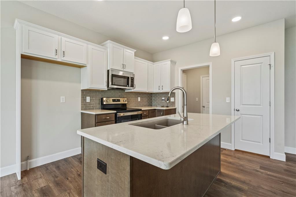 The Kinley by Ashlar Homes is a beautifully designed straight ranch plan offering 3 bedrooms and 2 full baths, thoughtfully crafted for comfortable, main-level living. This home boasts impressive curb appeal with a striking stucco front complemented by durable James Hardie siding on the sides and rear, plus a covered patio perfect for relaxing or entertaining. Inside, you’ll find stylish upgrades throughout, including quartz countertops and a tile backsplash in the kitchen, along with cabinets accented by crown molding. Luxury vinyl plank flooring flows seamlessly through the entry, great room, dining area, and kitchen, creating a cohesive and modern feel. The spacious primary suite features a private bath complete with tile flooring and a tiled shower with a built-in seat, offering both comfort and convenience. Additional highlights include an insulated garage and a garage door opener. Enjoy resort-style community amenities including a pool, playground, pickleball and basketball courts, disc golf, firepit, and a stocked pond for fishing—perfect for an active and social lifestyle. Home is under construction with an estimated completion date of August 2026 - photos are of the same plan, but will have different finishes