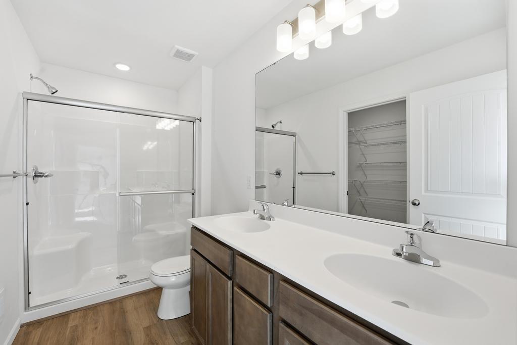 This beautifully designed two-story home offers 3 bedrooms, 2.5 baths, and a versatile bonus loft, perfect for office, or play area. With great curb appeal and a low-maintenance exterior featuring durable James Hardie siding, this home is built for both style and convenience. The main level showcases an open and inviting layout with luxury vinyl plank flooring throughout, along with a modern kitchen complete with quartz countertops and a stylish tile backsplash. Upstairs, upgraded high-traffic carpet leads to all bedrooms and a convenient second-level laundry room. The spacious primary suite features a ceiling fan and a private bath with a double vanity, walk-in closet, and shower, creating a comfortable retreat at the end of the day. Enjoy resort-style community amenities including a pool, playground, firepit, pickleball and basketball courts, disc golf, and a stocked pond for fishing—offering something for everyone to enjoy. This home is under construction with an estimated completion date of July 2026. Photos and video are of the same plan - some finishes may be different