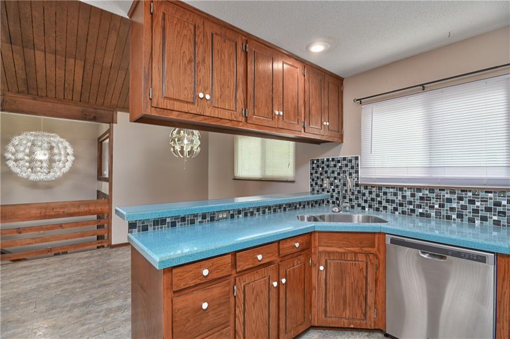 This 3-bedroom, 4-bathroom home in Raytown offers a unique blend of character, space, and functionality with a layout that stands out from the typical cookie-cutter design. From the moment you arrive, you’ll notice the inviting curb appeal, spacious driveway, and attached two-car garage. Inside, the home opens up to a bright and airy main living area featuring vaulted ceilings, warm wood accents, and a striking fireplace that anchors the space. Large windows and sliding glass doors bring in natural light and create an easy connection to the backyard, making the main level feel open and welcoming. The kitchen offers plenty of cabinet storage, generous counter space, and a functional layout that flows seamlessly into the dining area—ideal for everyday living or hosting guests. Just off the main living space, you’ll find well-sized bedrooms, including a primary suite setup, along with multiple bathrooms that provide flexibility and convenience for a variety of living situations. Downstairs, the home continues to deliver with additional living space perfect for a second family room, recreation area, or home office setup. With four bathrooms total, there’s no shortage of functionality throughout the home. Step outside to a fenced backyard with room to relax, entertain, or make your own outdoor vision come to life. If you’re looking for a home with solid bones, distinctive style, and room to personalize, this Raytown property is one worth seeing in person.