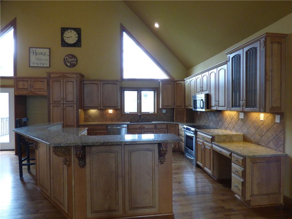 IT'S LAKE SEASON! Beautiful Pomme de Terre Lake retreat, great location near the entrance of Pomme de Terre State Park. Just a short walk to lake-access to enjoy swimming, canoeing, kayaking, paddle boarding, etc. Only 1 mile from free public boat ramp & pristine RV & camping park. Walk in and have your breath taken away by this beautiful open concept one-level plan with soaring ceilings and tons of upgrades. Large great room with floor-to-ceiling wood-burning stone fireplace. Entertainer's kitchen boasts custom cabinets, granite counter tops, plenty of storage and a large island. Huge primary bedroom with vaulted ceilings, loft, and ensuite bath with his and hers walk in closets and 2 separate vanities. Plenty of room to lounge in the oversized family room with vaulted ceilings, skylights and electric fireplace. Exterior has vinyl siding and trex decking for low maintenance, giving more time to enjoy the lake. HVAC only 2yrs old. This is one you don't want to miss! Come see this gem today!
