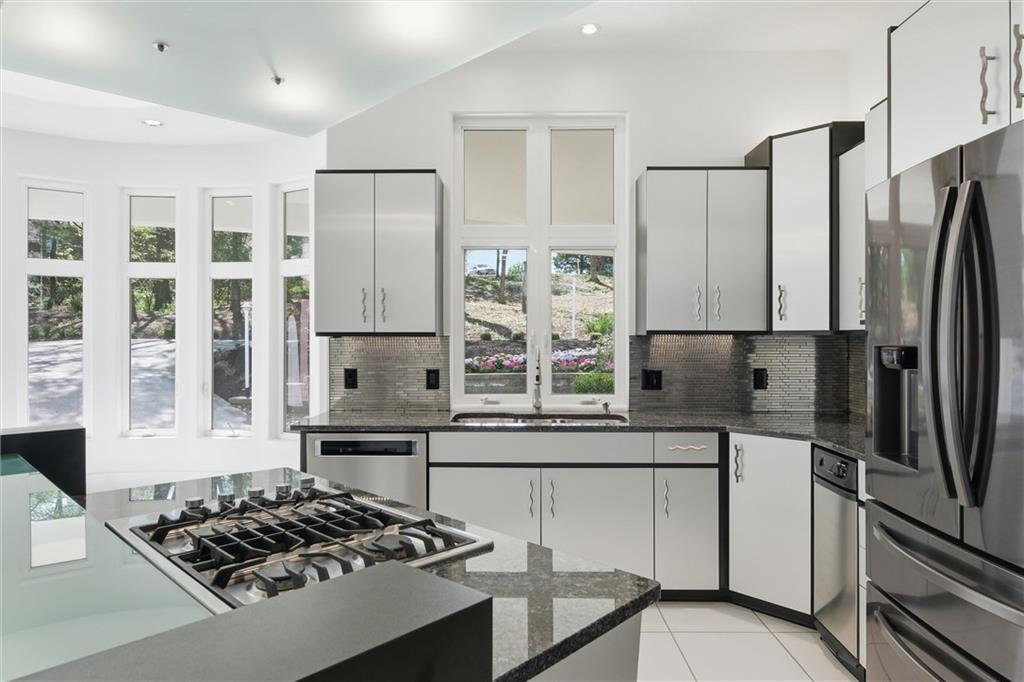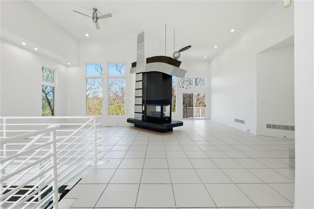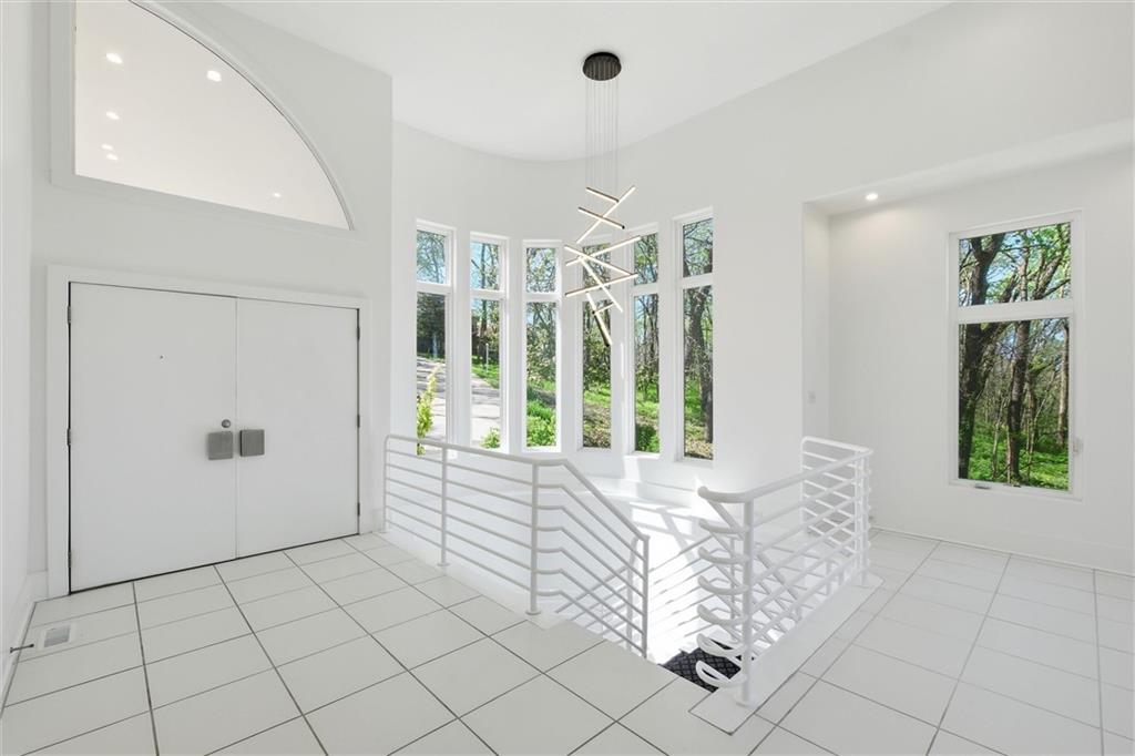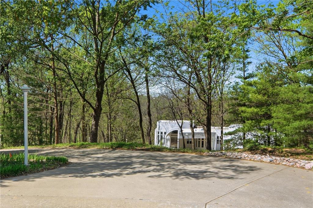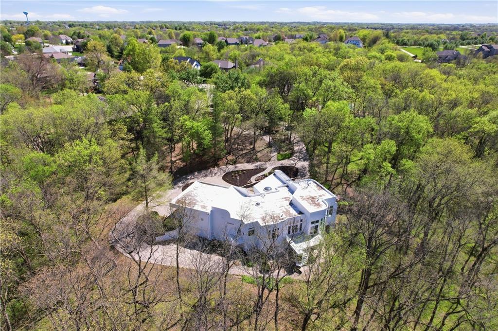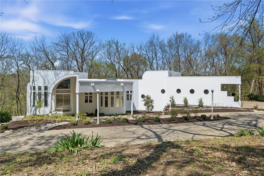 Experience a rare opportunity to own a living work of art. Masterfully designed by world-renowned architect Richard Meier, this custom-built residence is a symphony of light, geometry, and nature. Perched on a secluded cul-de-sac and nestled within a lush canopy of mature trees, the home embodies Meier's signature modernist aesthetic--a striking white silhouette that serves as a pristine canvas for the surrounding forest's vibrant colors. Wrapped in 5.19 acres of mature timber, this custom-built Richard Meier Estate offers the ultimate in architectural distinction and privacy. Designed to harmonize with its wooded surroundings, this contemporary reverse 1.5 story home features, soaring ceilings and an abundance of custom windows that frame breathtaking views from every angle. The main level is anchored by a chef's kitchen, bright and airy, round, eat in kitchen area, separate pantry, main level laundry room, and a grand living area featuring one of three see through fireplaces. Retreat to the primary suite, a true sanctuary with its own see-though fireplace, attached to a private study with patio access,. Relax in spa-like bath with a jacuzzi tub, separate walk-in shower, dual closets, dual vanities, dual toilet closets! The walk-out lower level is an entertainers dream, complete with a second full kitchen, a spacious family room, infrared sauna room, exercise room and seamless access to the outdoor patio and creek. True to the architect's vision, the home features soaring glass walls and expansive open spaces that seamlessly blur the boundary between indoors and out. Every angle is intentionally crafted to capture shifting natural light, creating an environment that feels both ethereal and grounded. This is more than a residence; it is a masterwork for the collector of fine architecture who seeks the ultimate harmony of space and site.